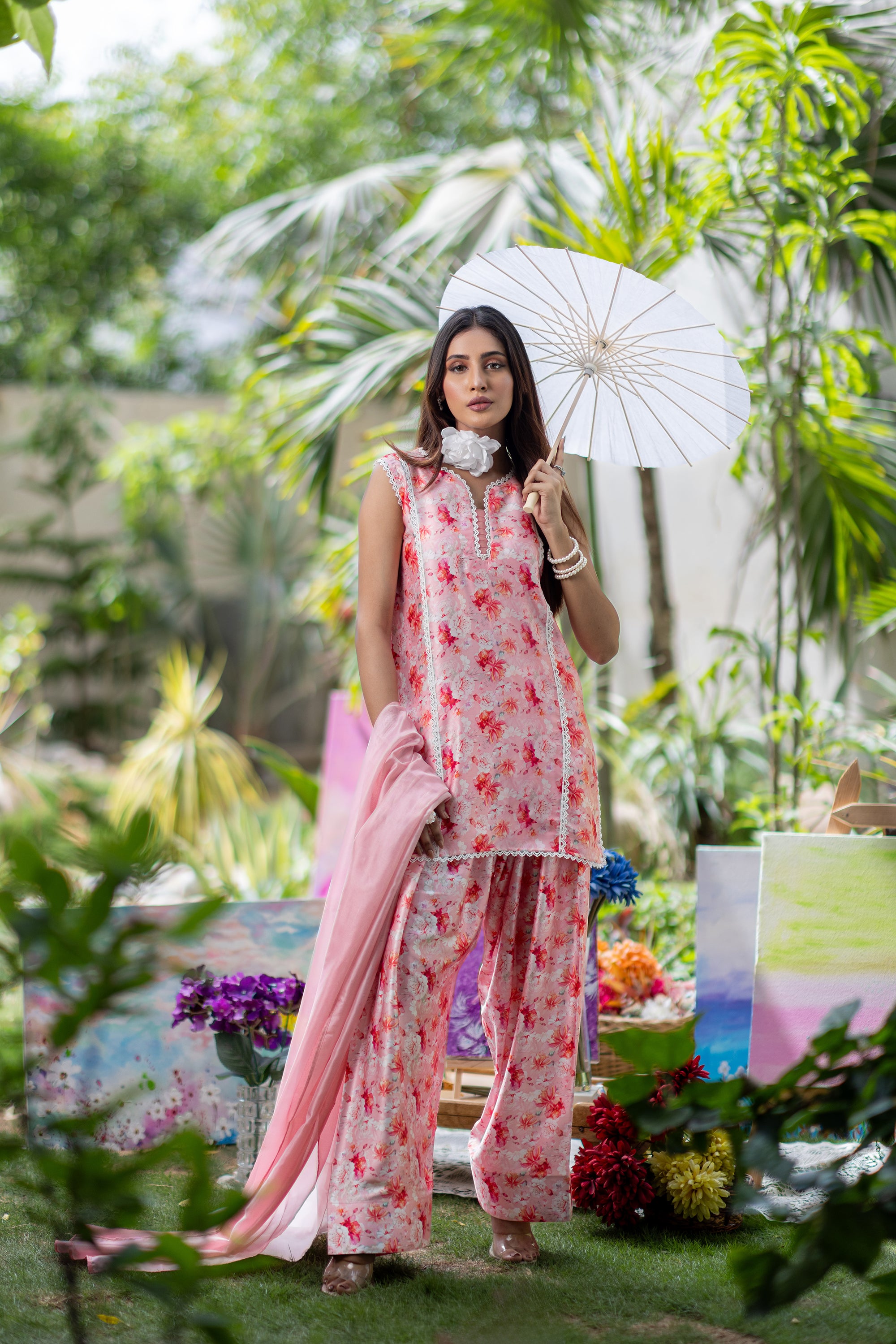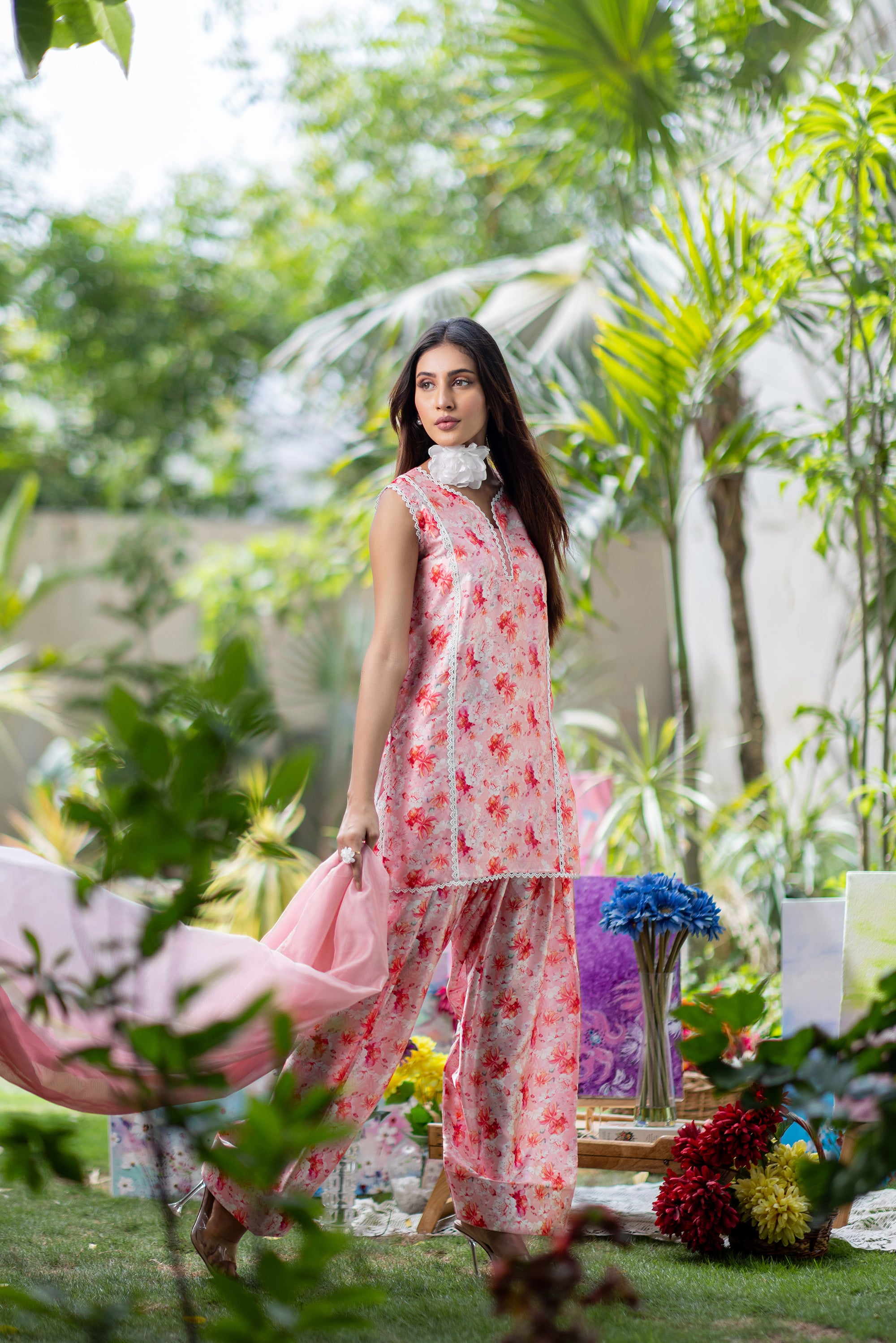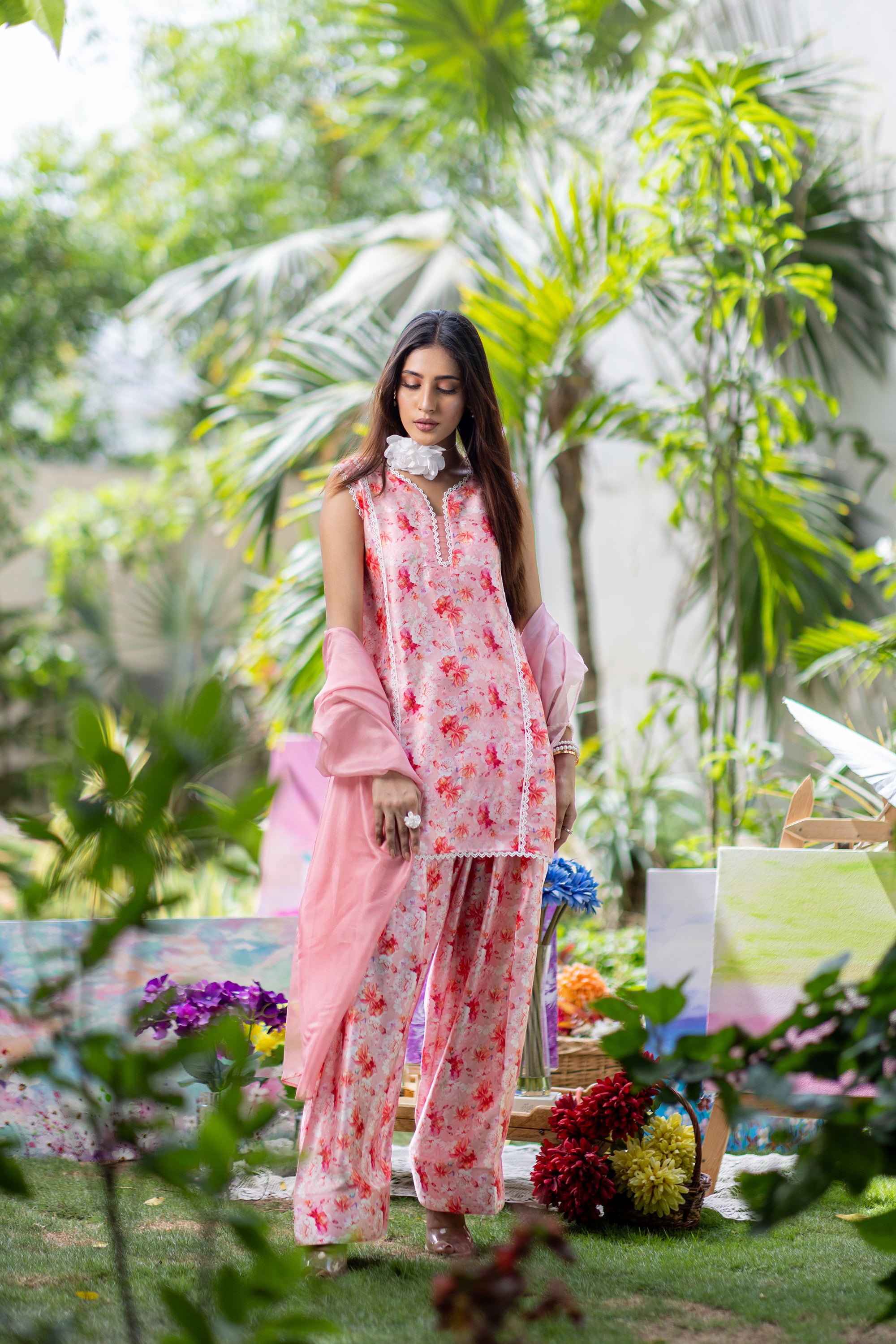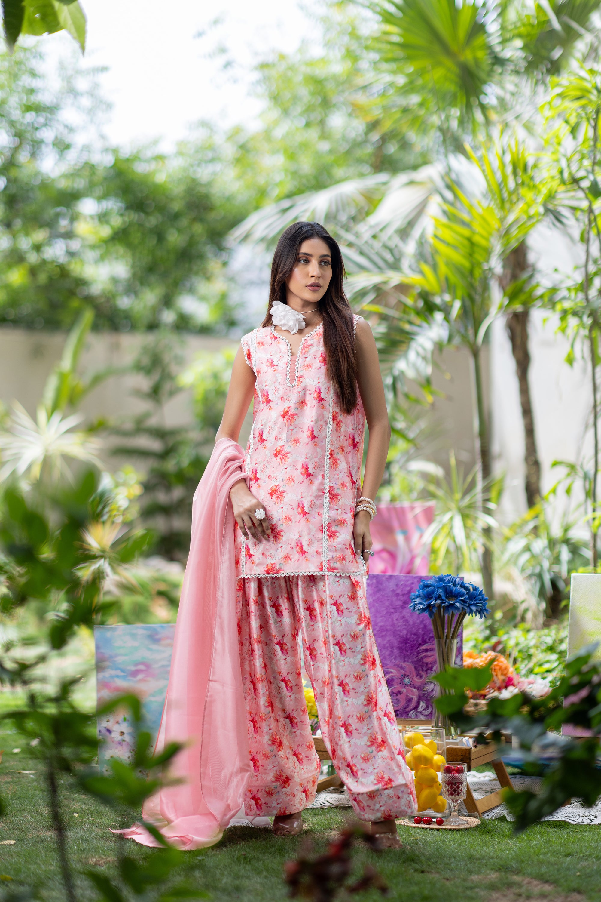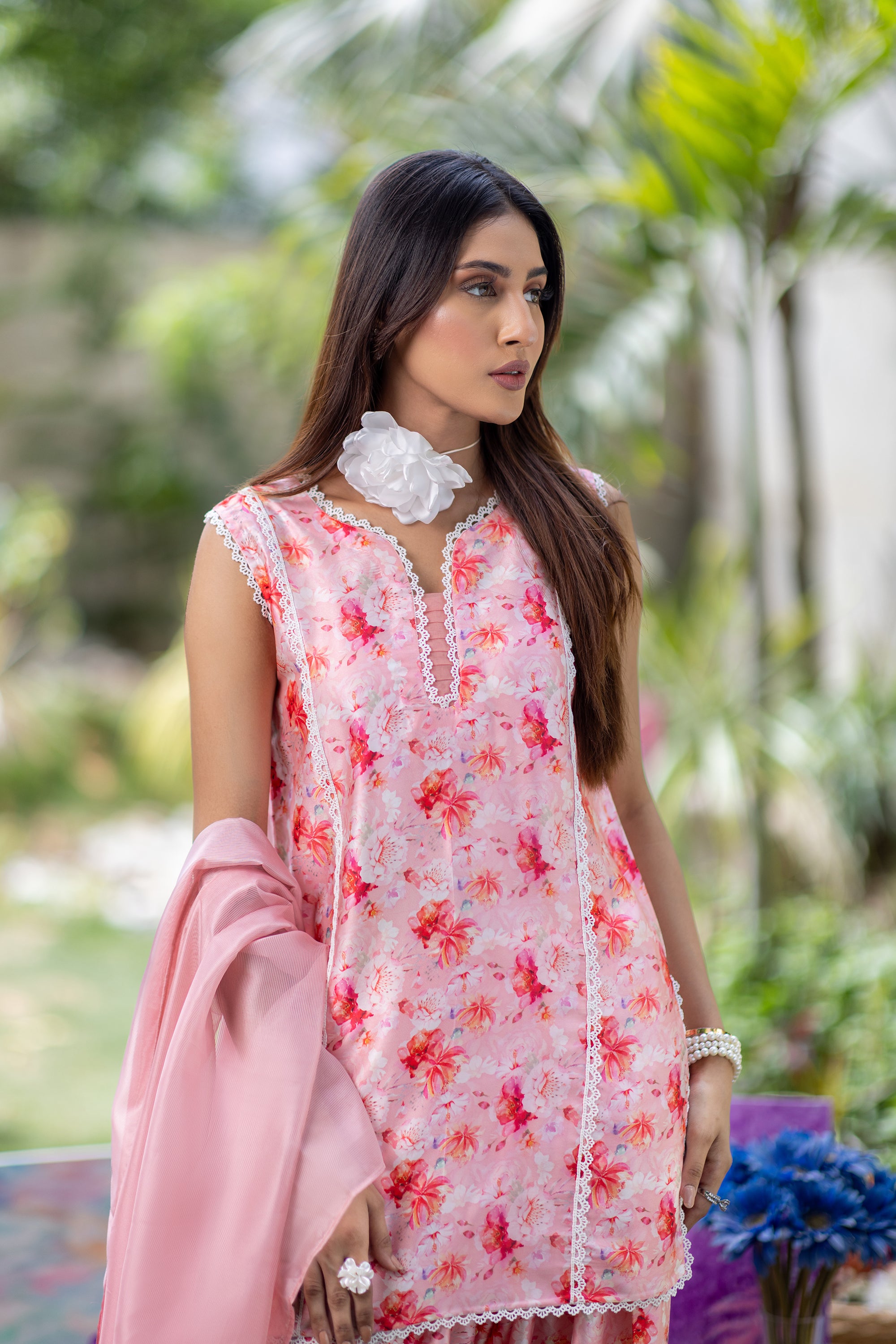 Baby Pink Chikan & Crochet Outfit