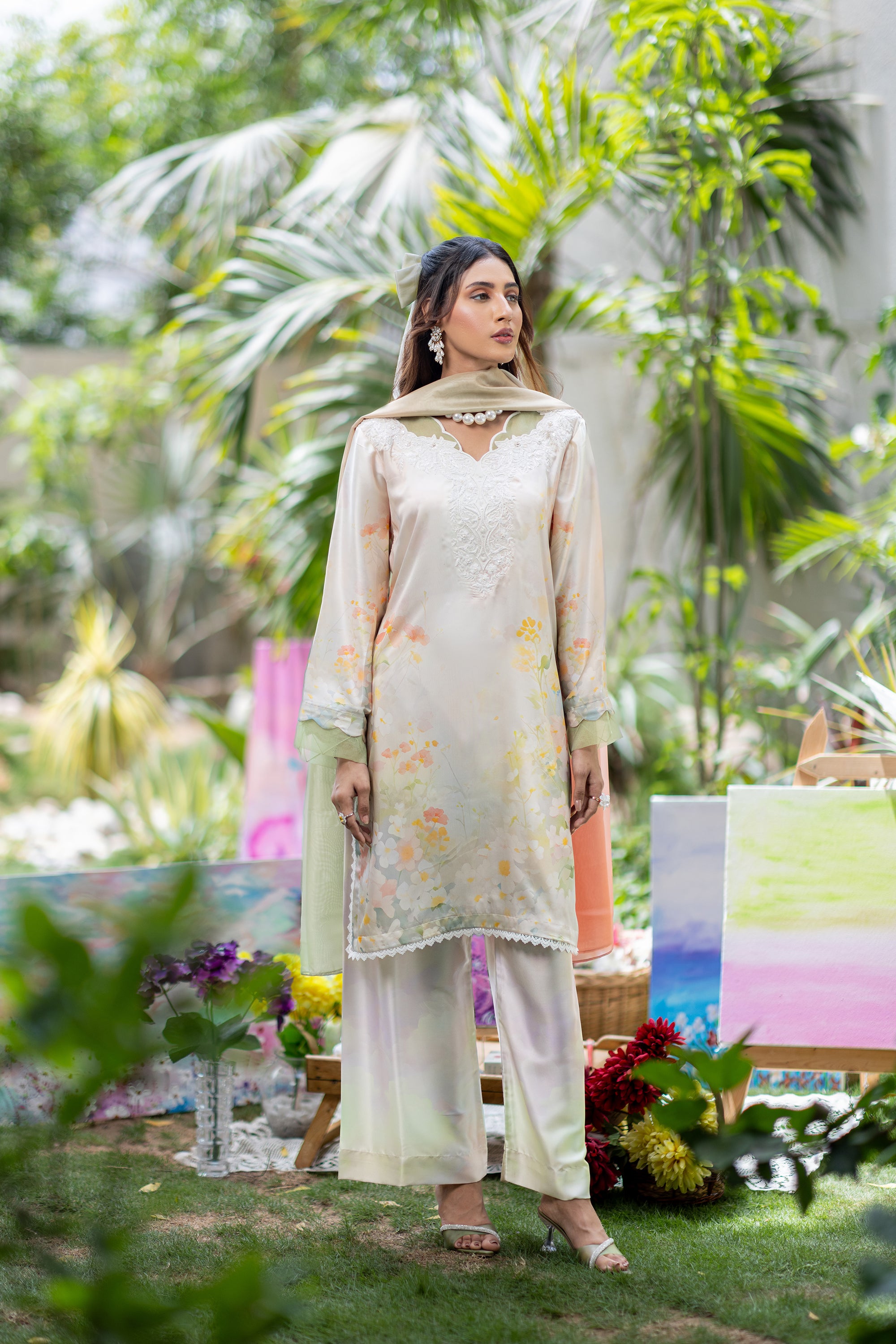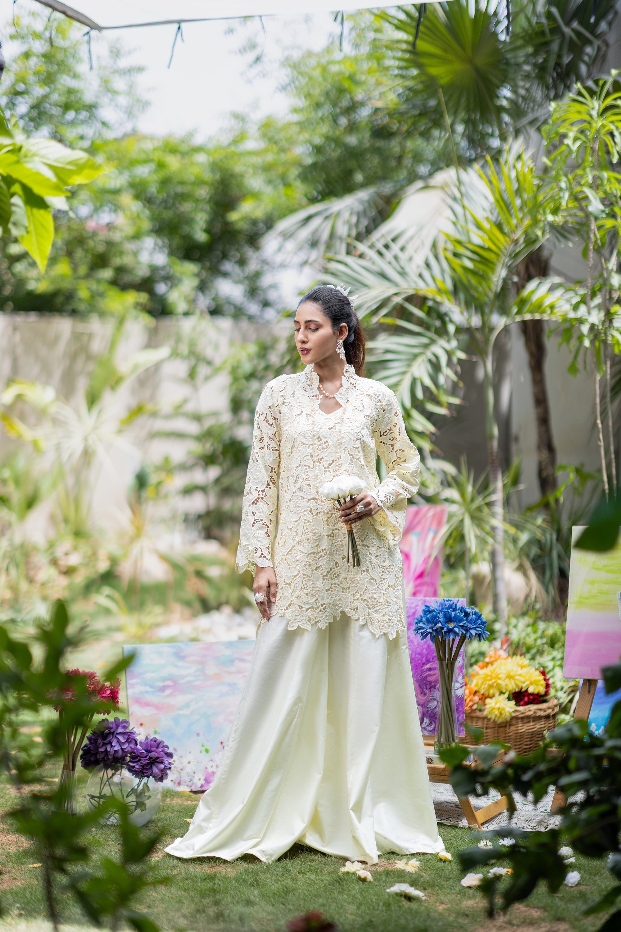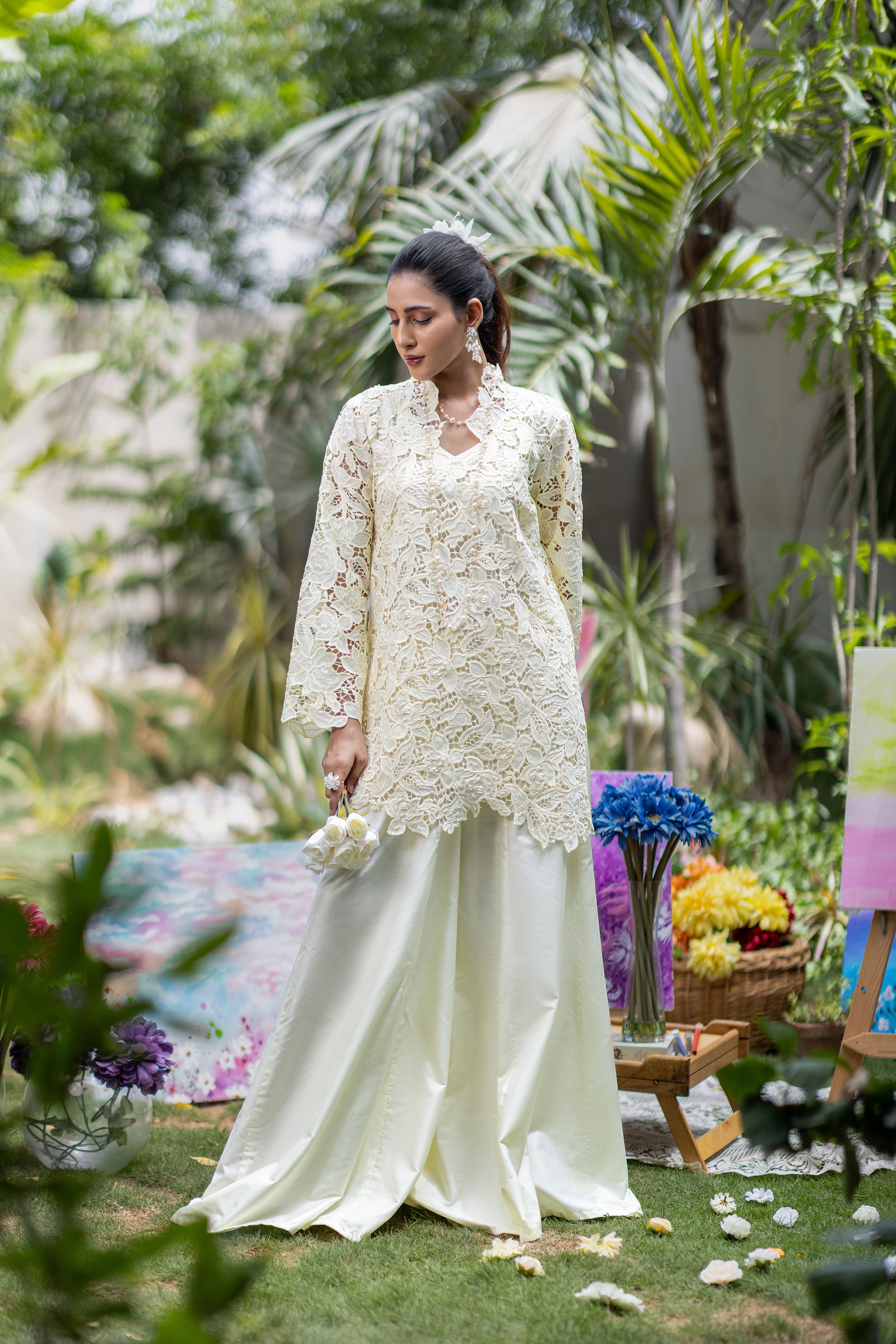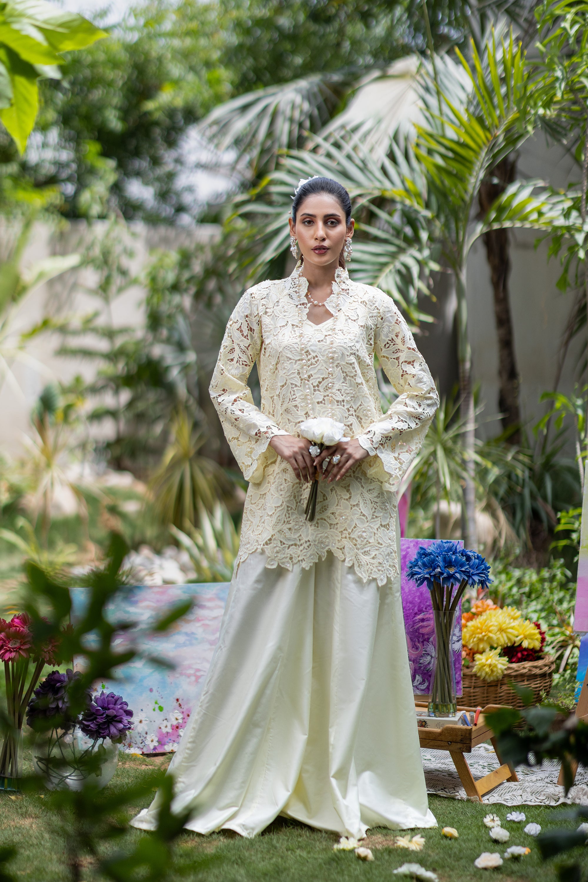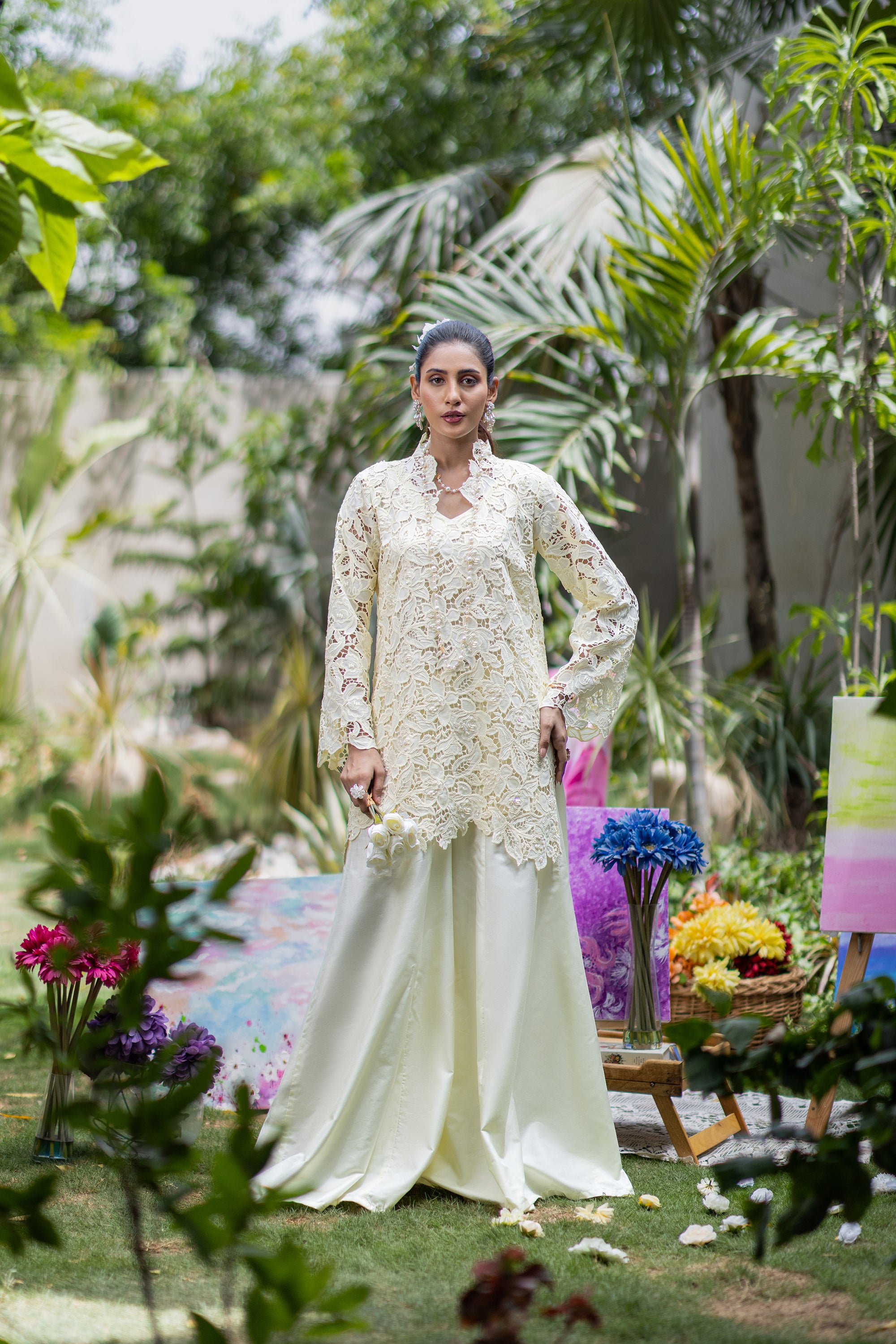 Baby Pink Chikan & Crochet Outfit