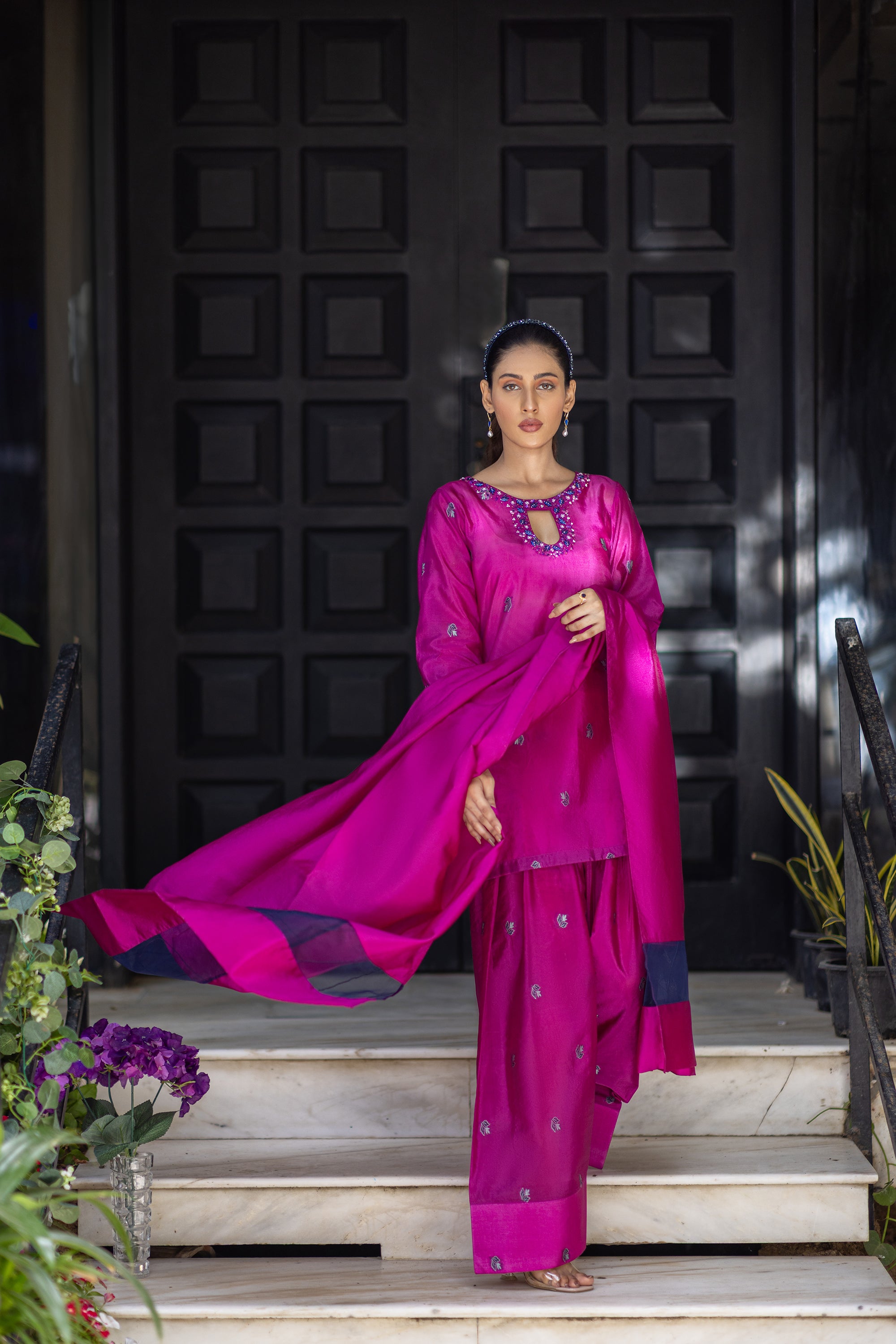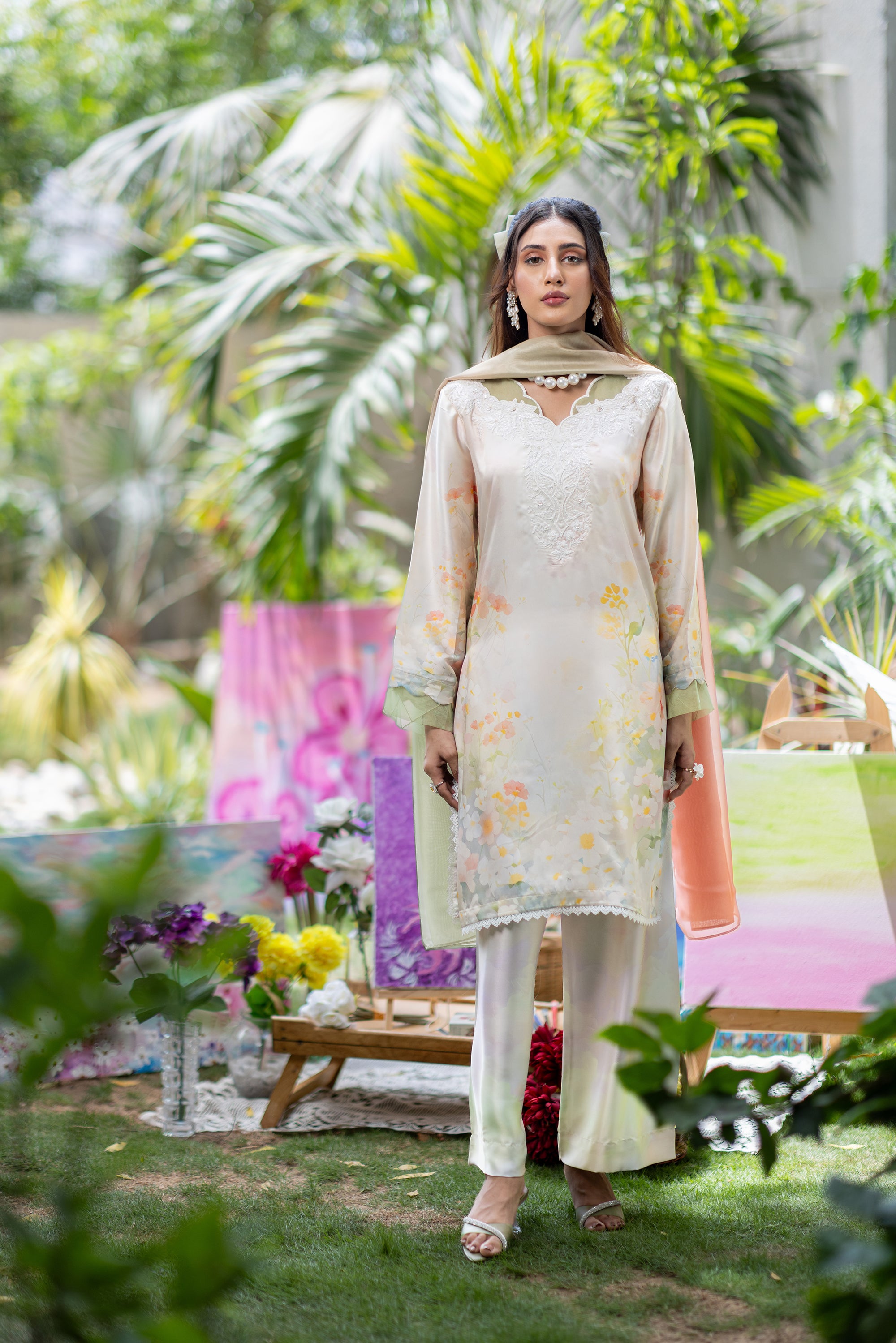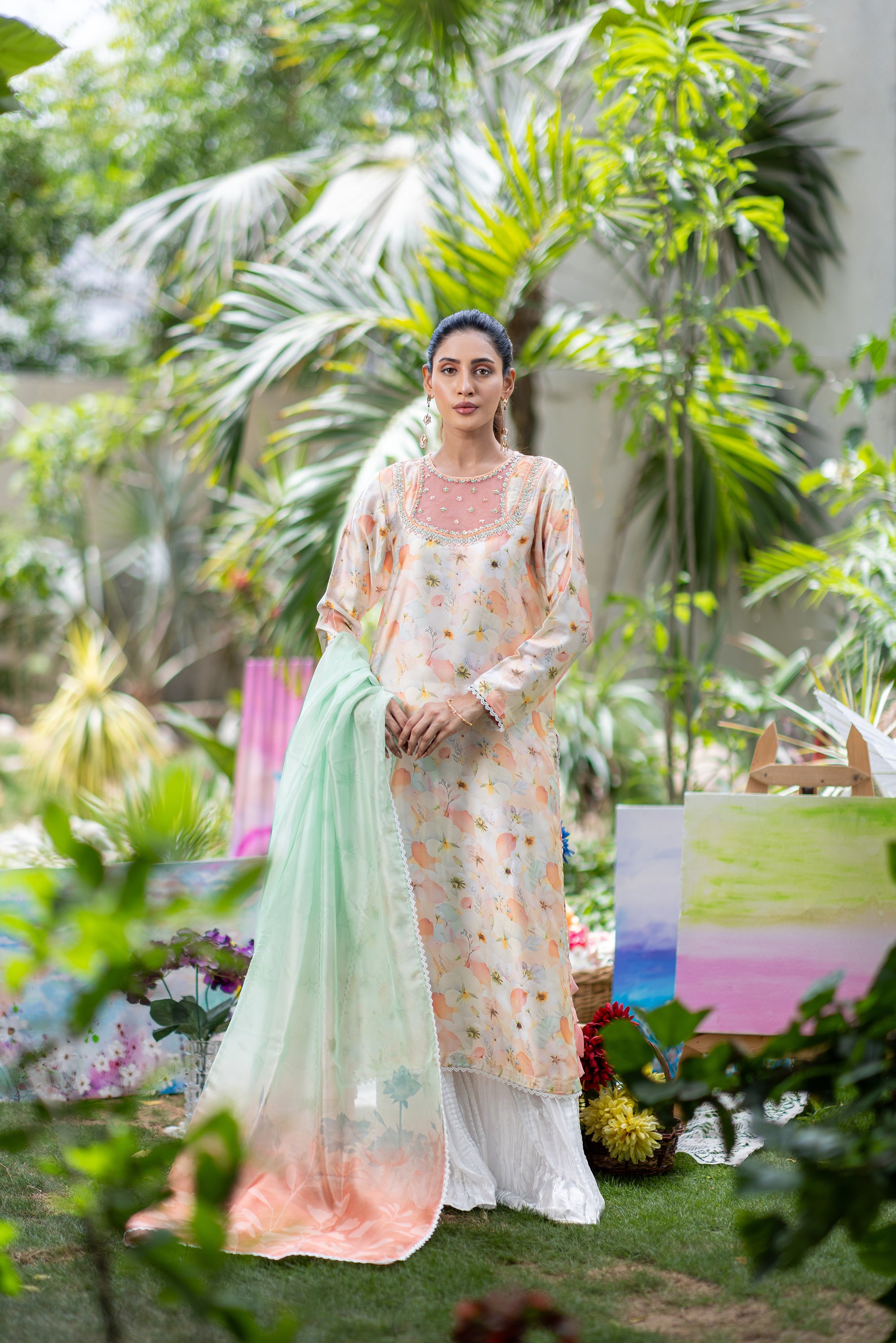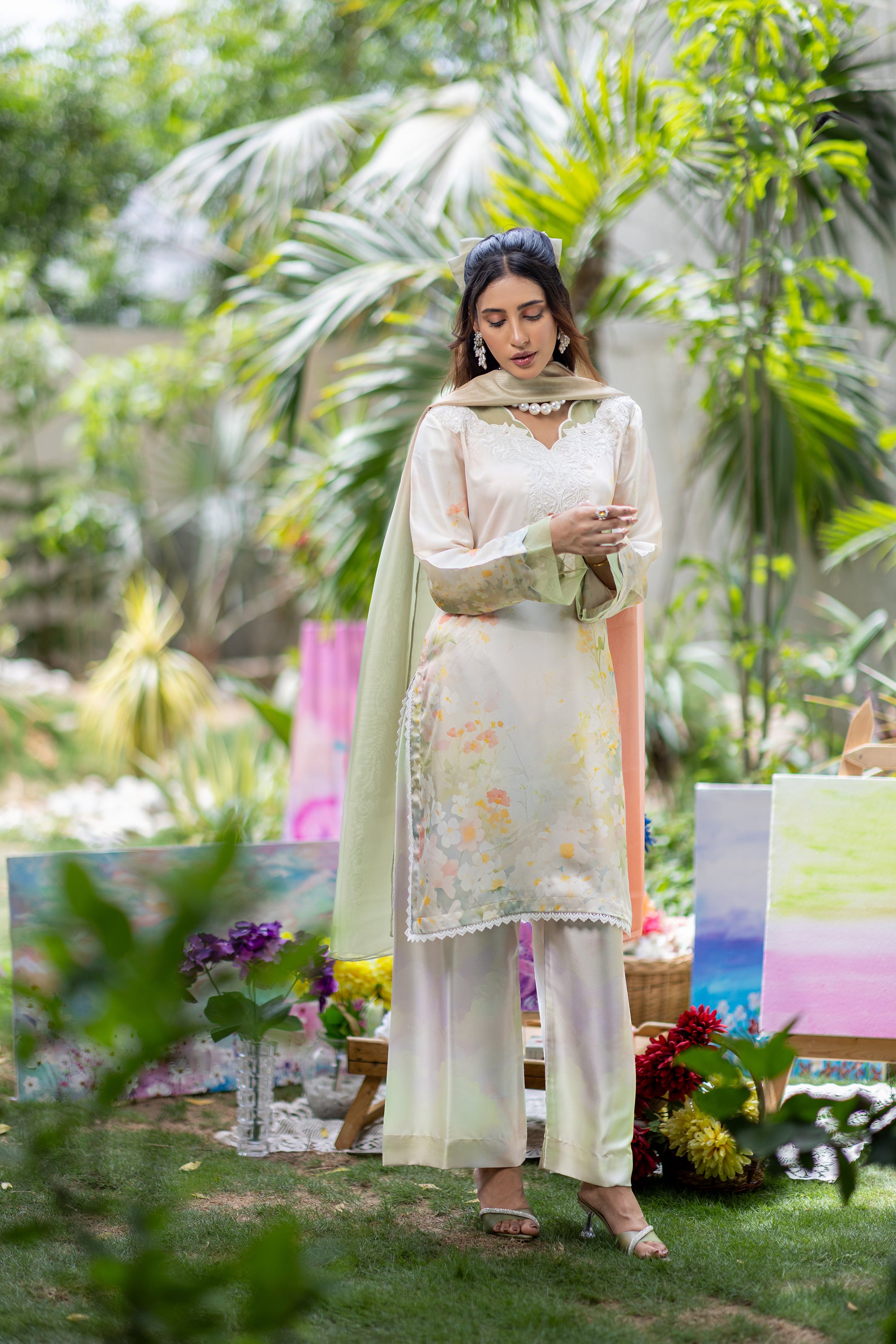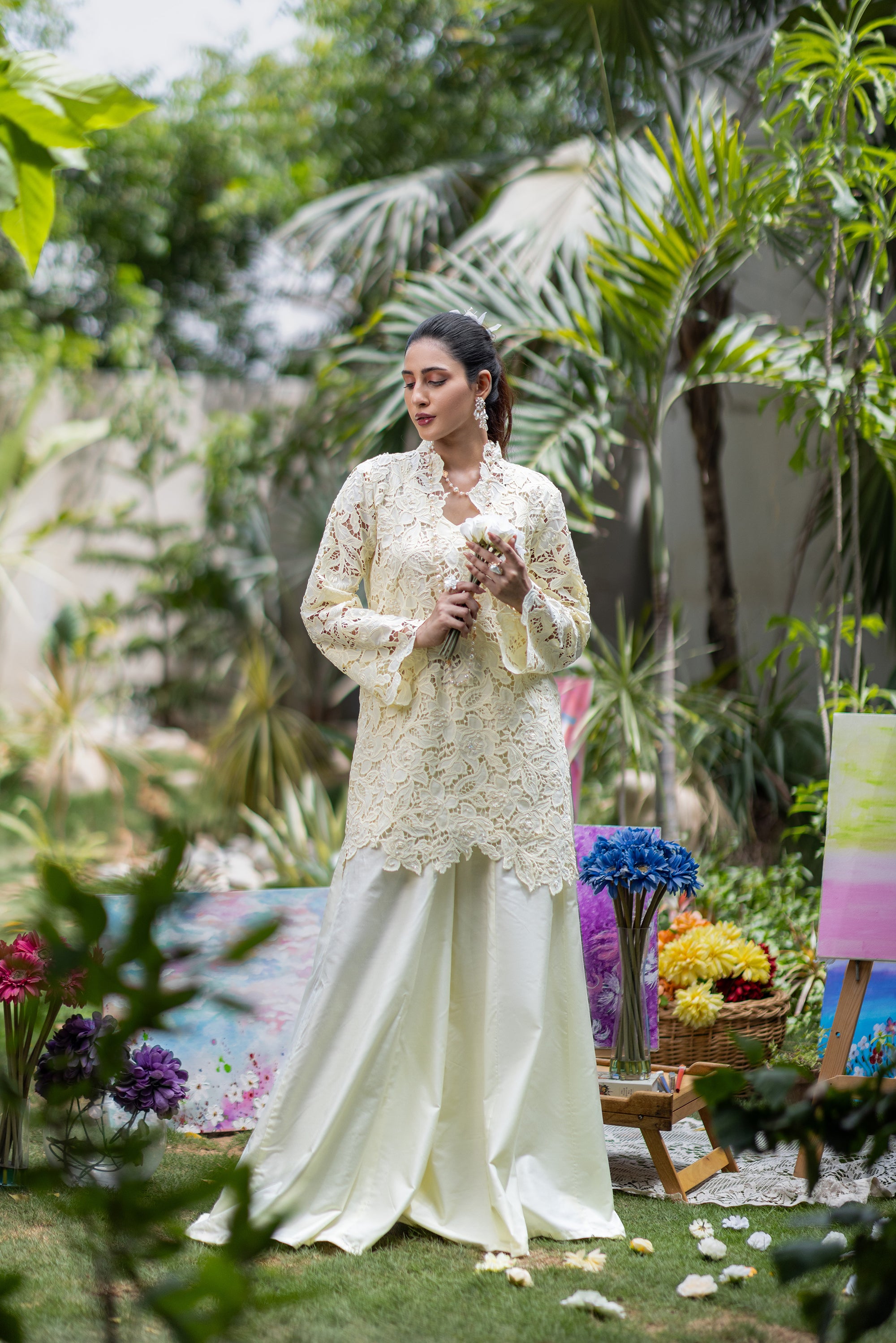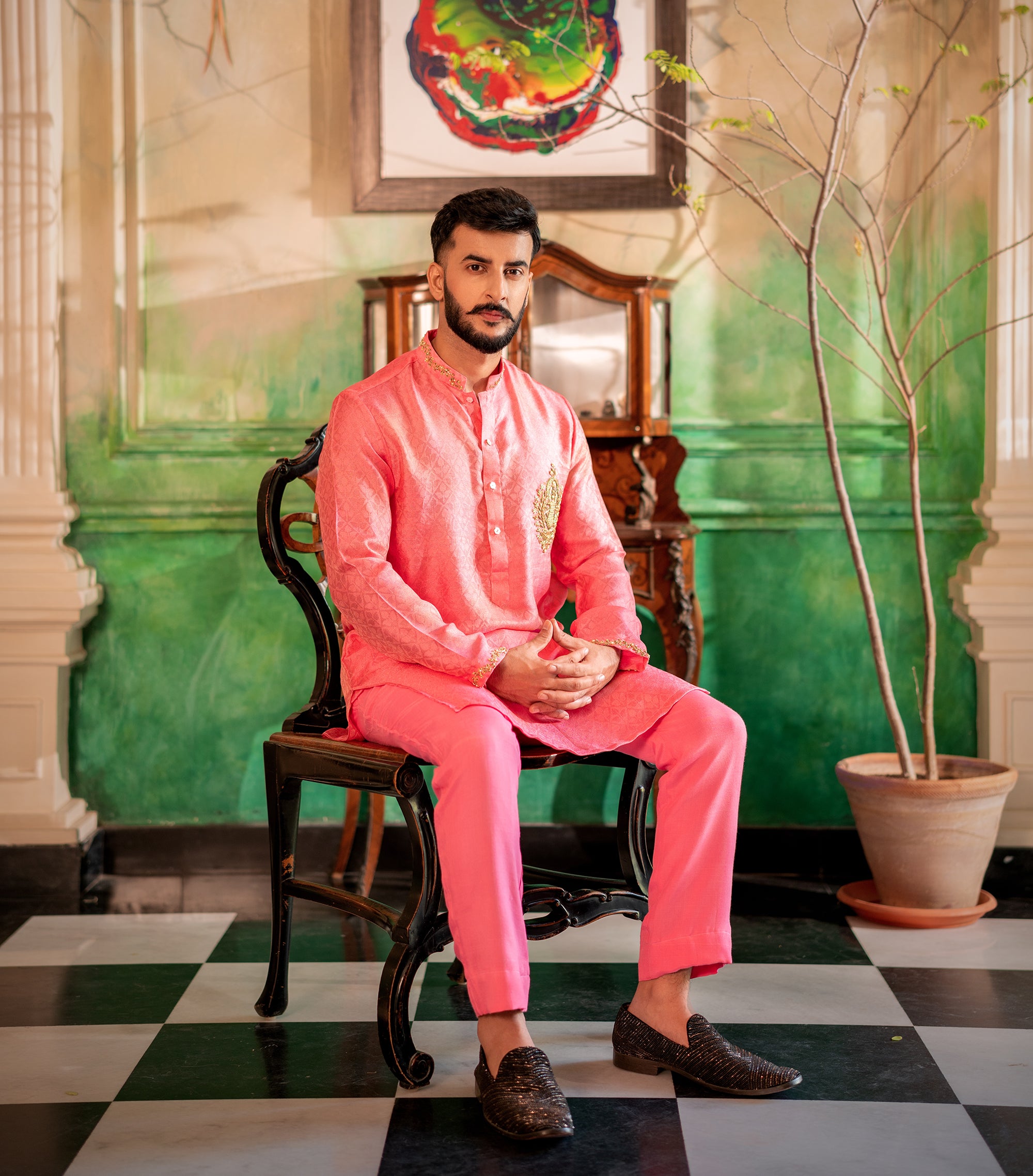 Baby Pink Chikan & Crochet Outfit