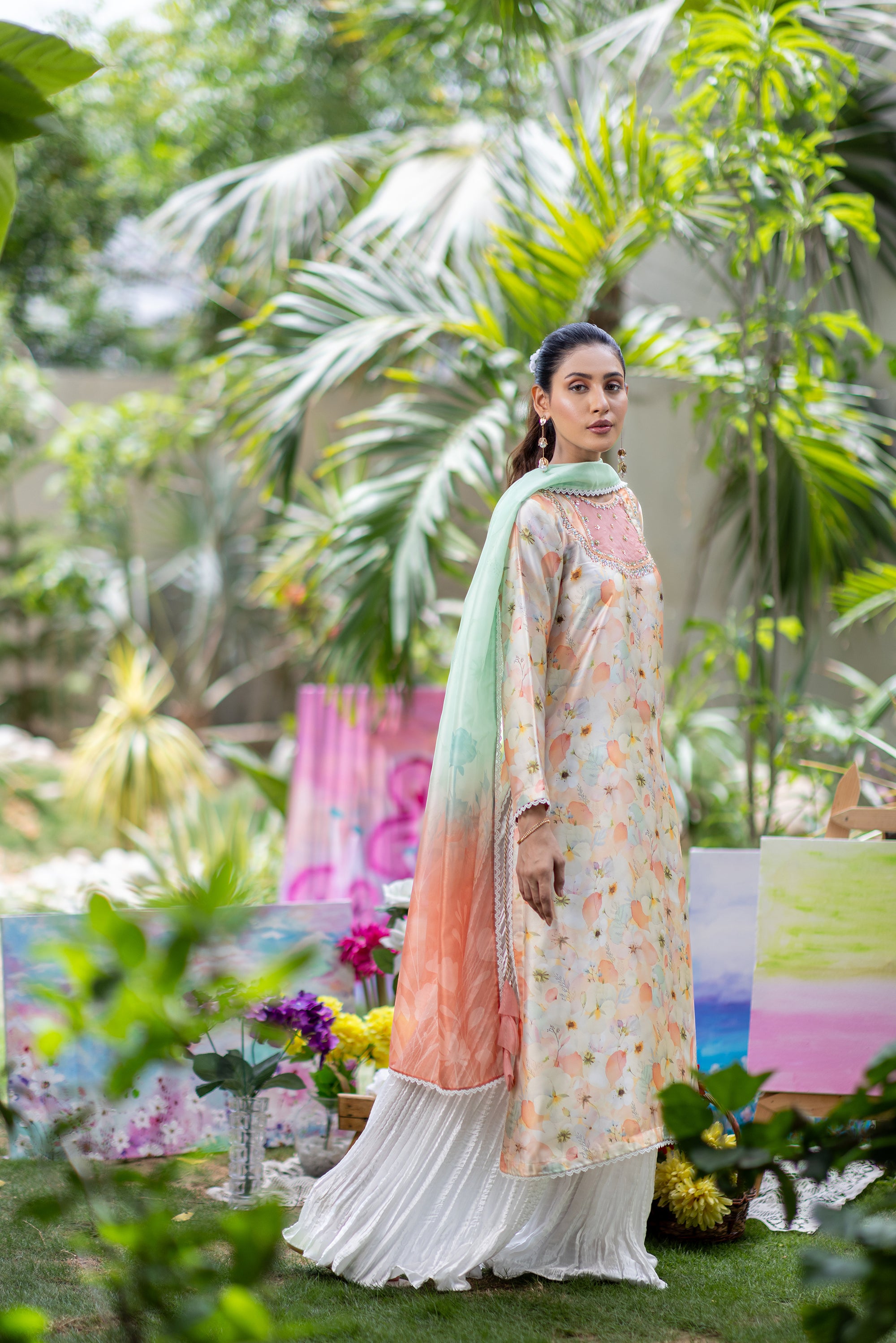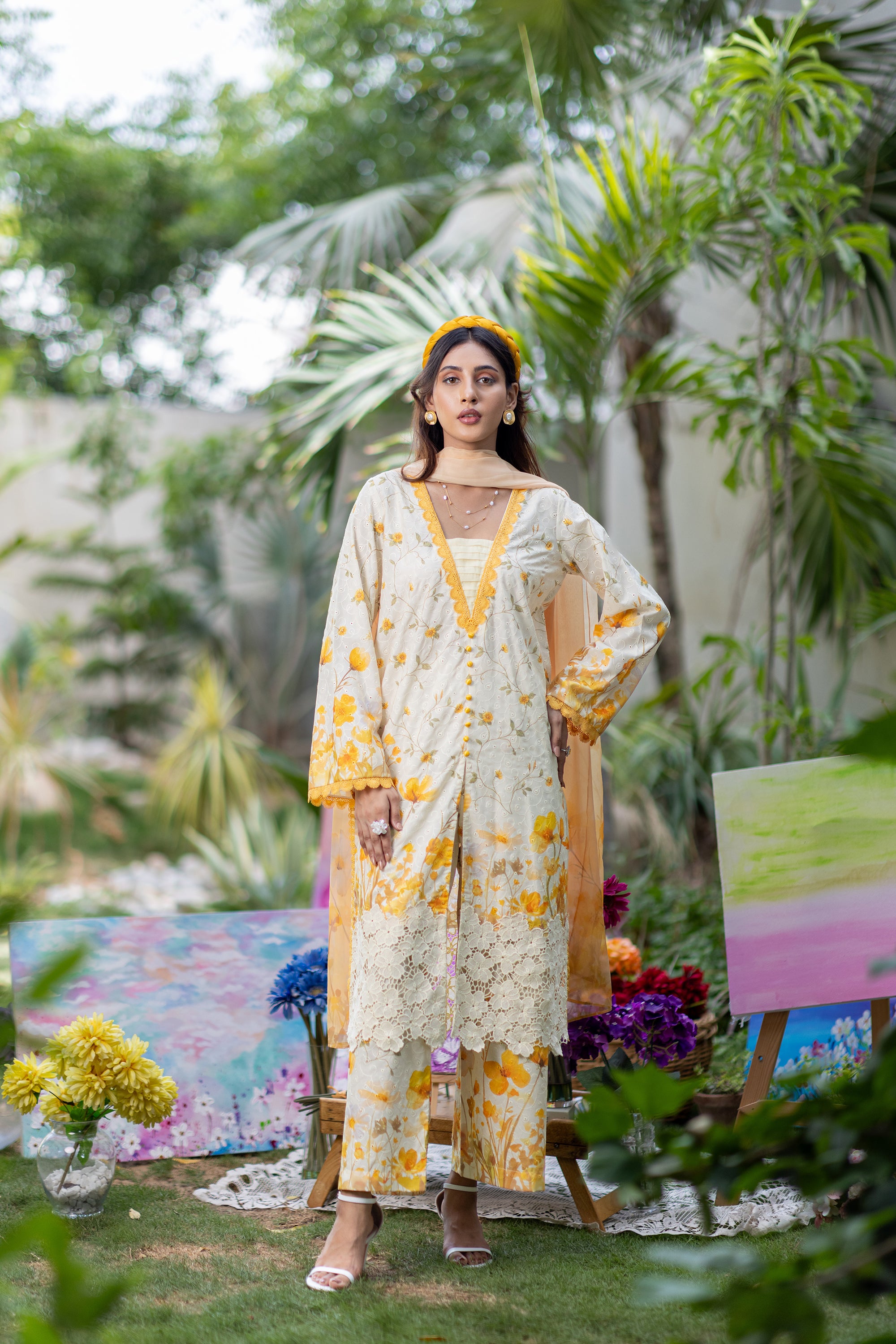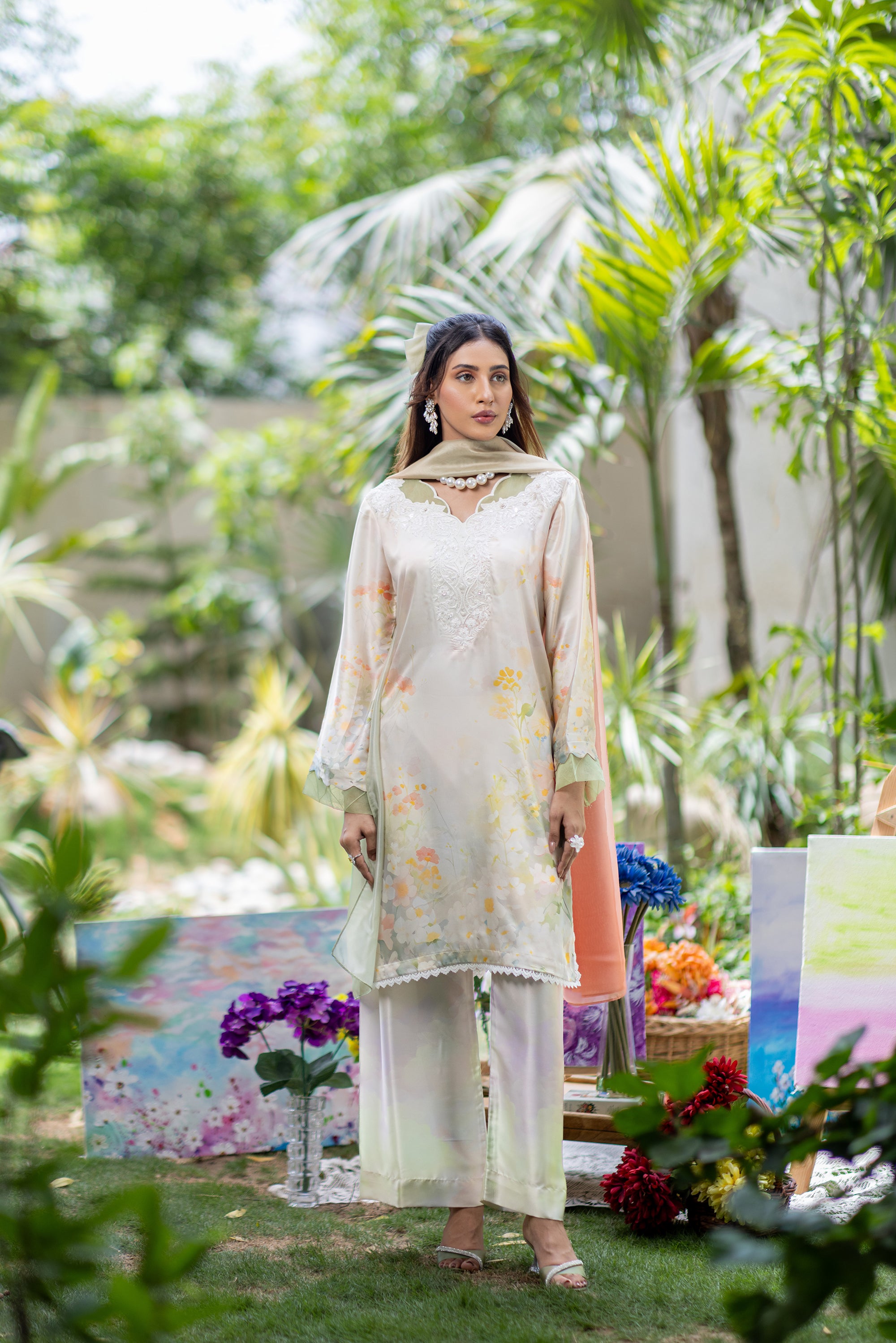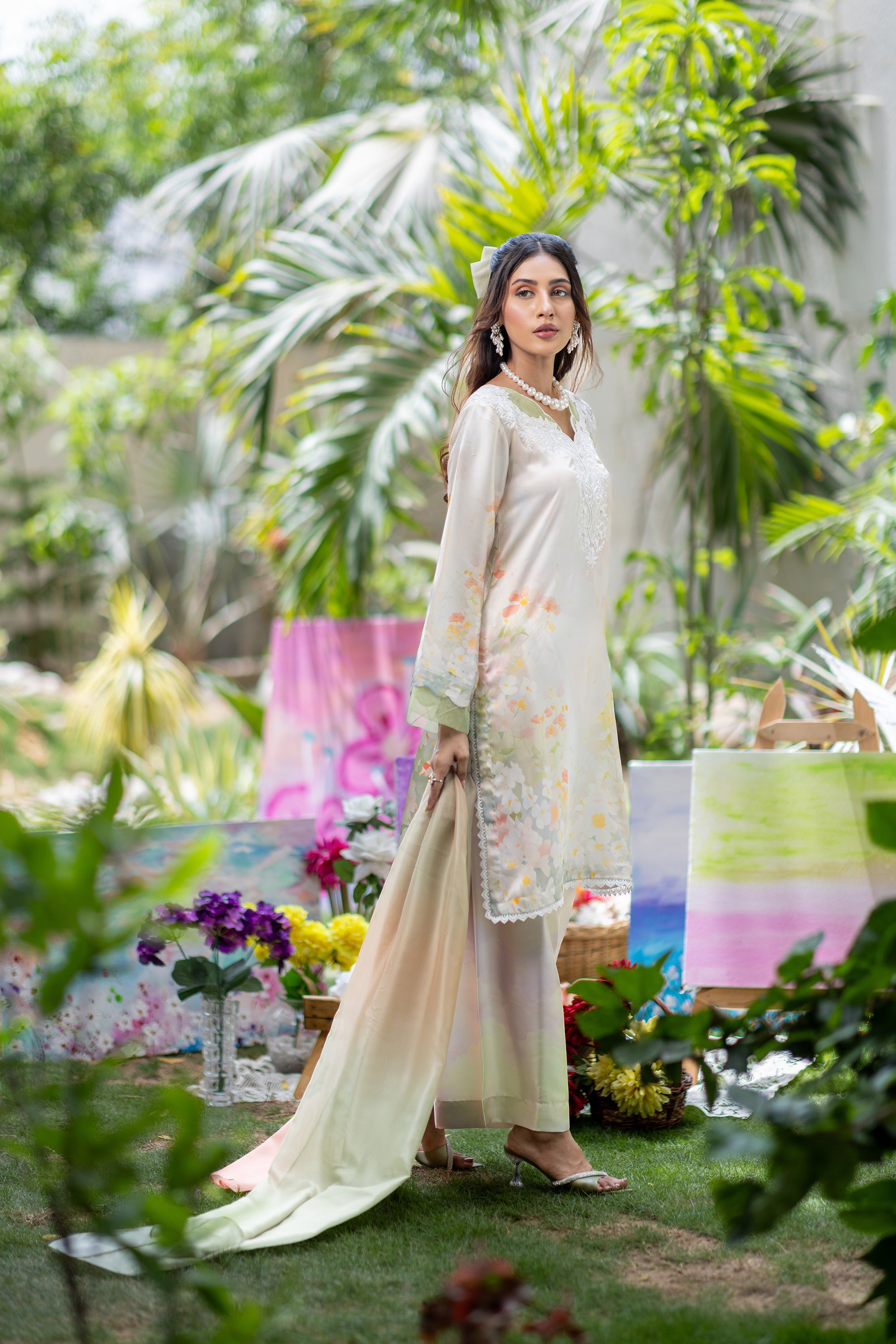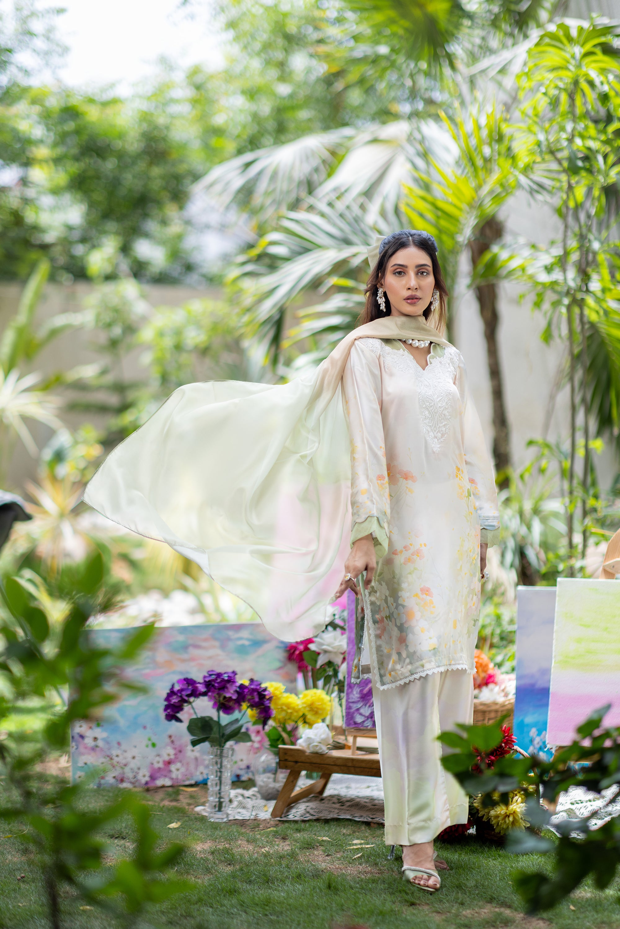 Baby Pink Chikan & Crochet Outfit