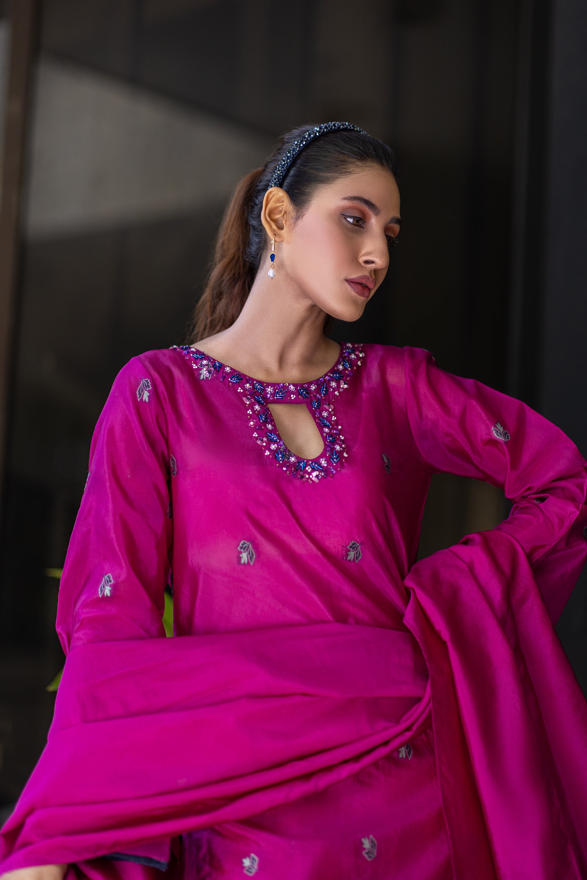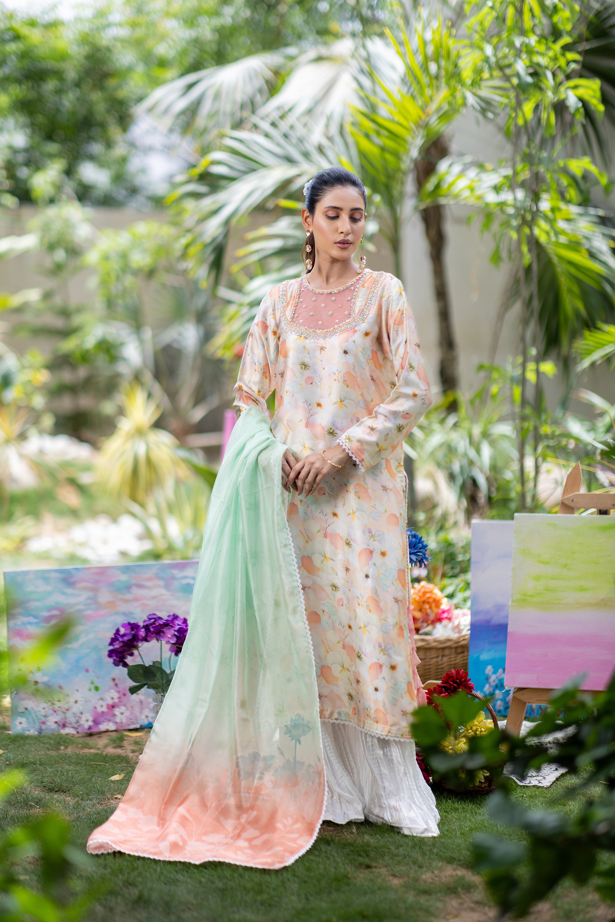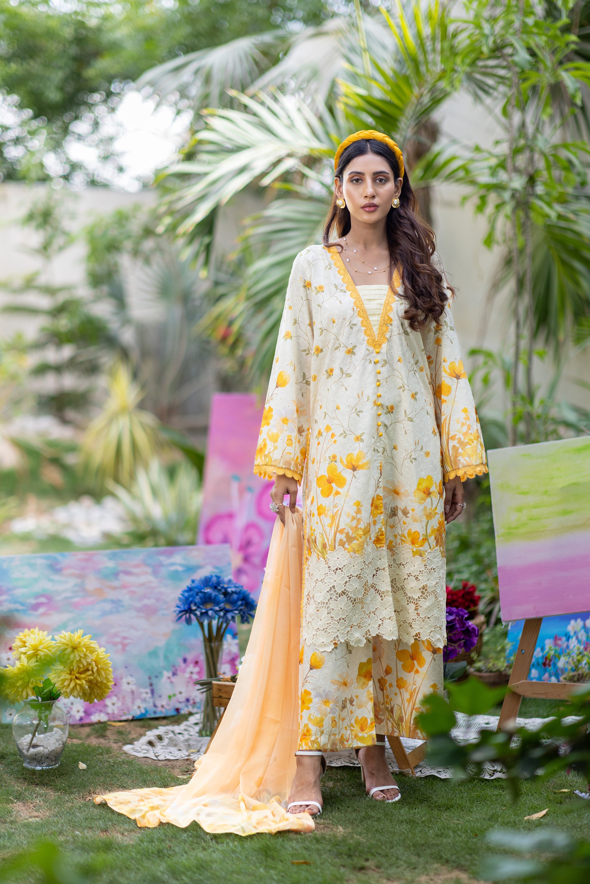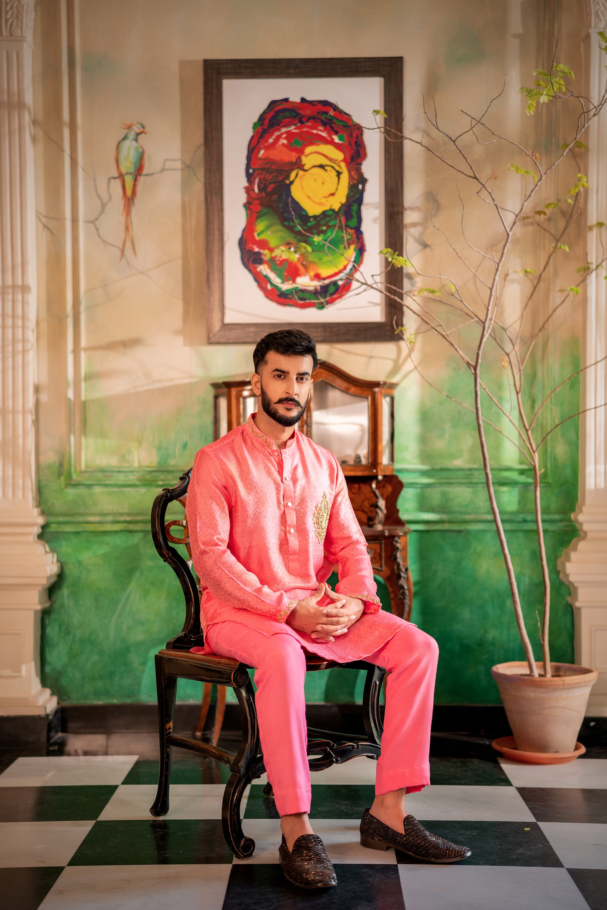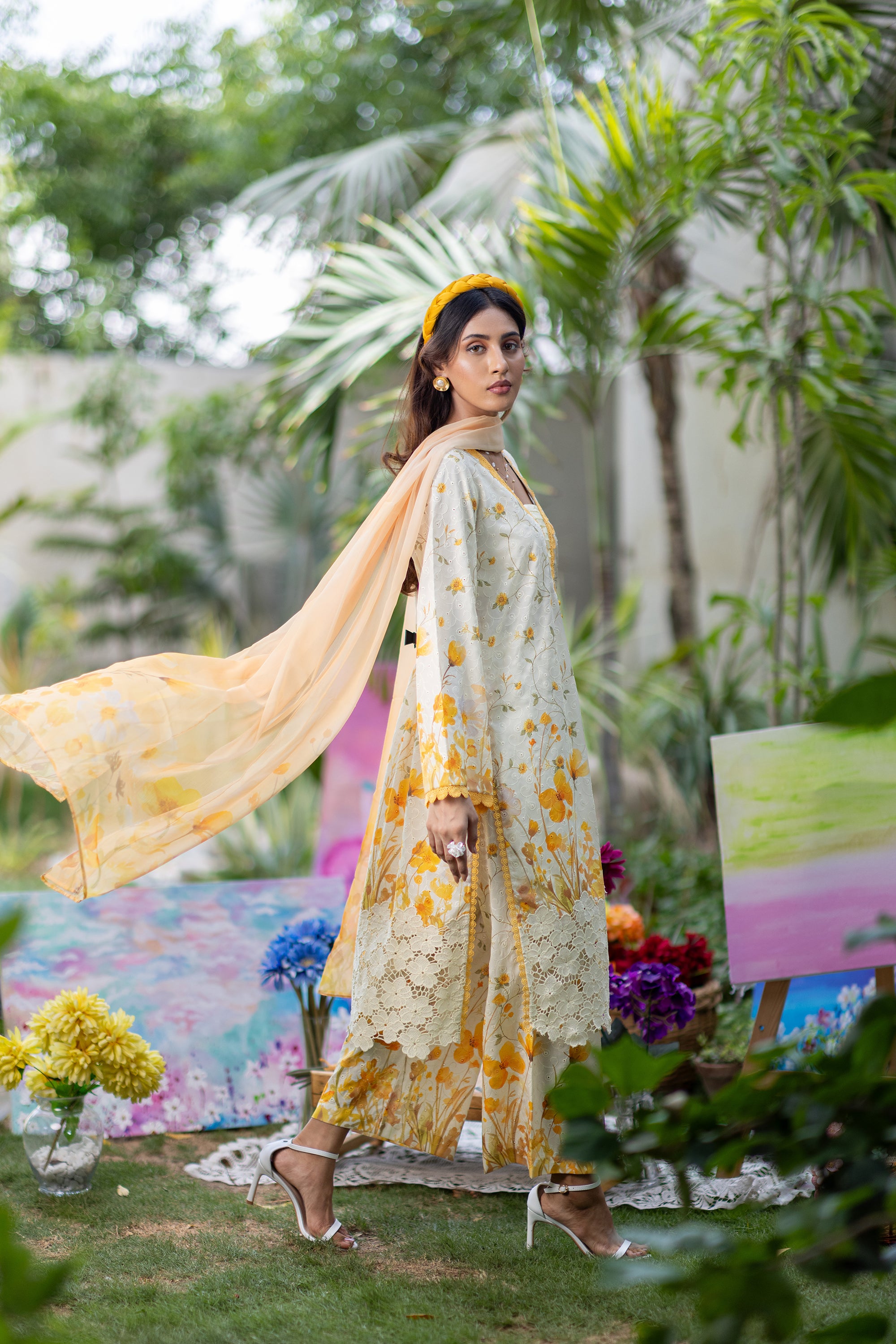 Baby Pink Chikan & Crochet Outfit