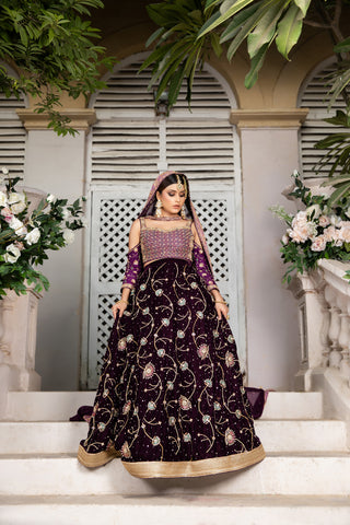 Make your Mehndi ceremony unforgettable with this stunning plum velvet lehnga choli—a piece that promises to create lasting memories on your special day. Embrace tradition and elegance, and make a statement that reflects your unique style!