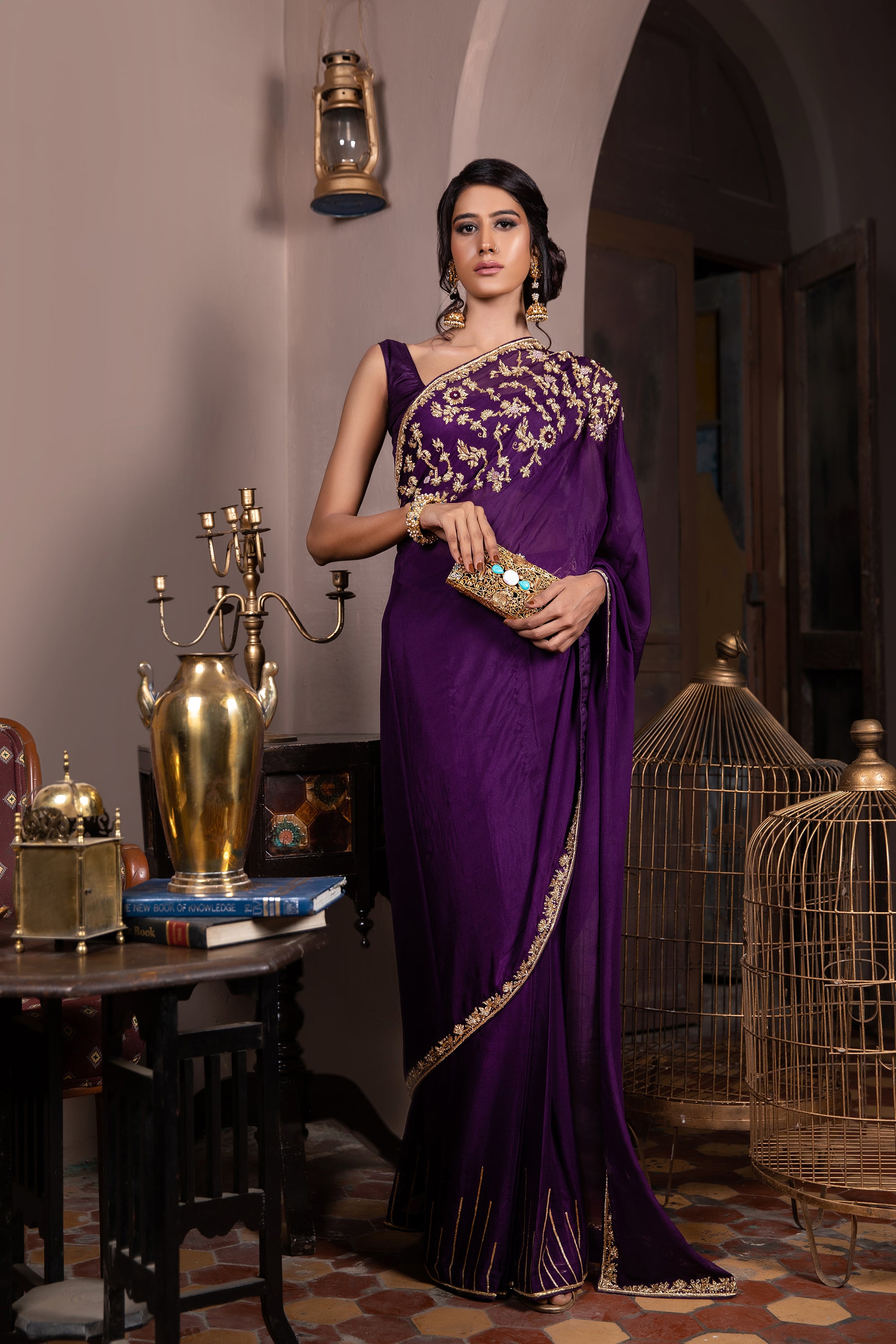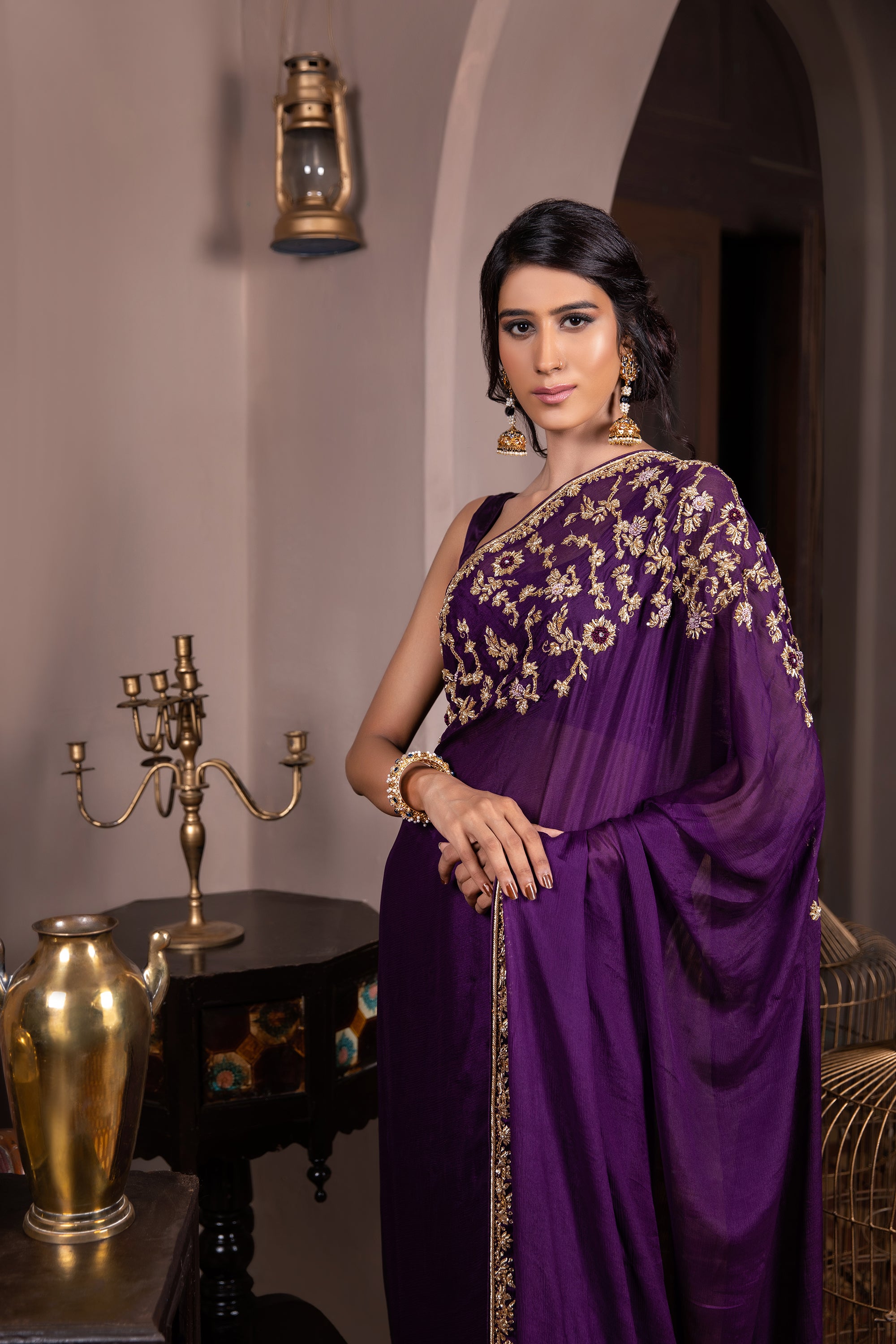 Purple contemporary saree