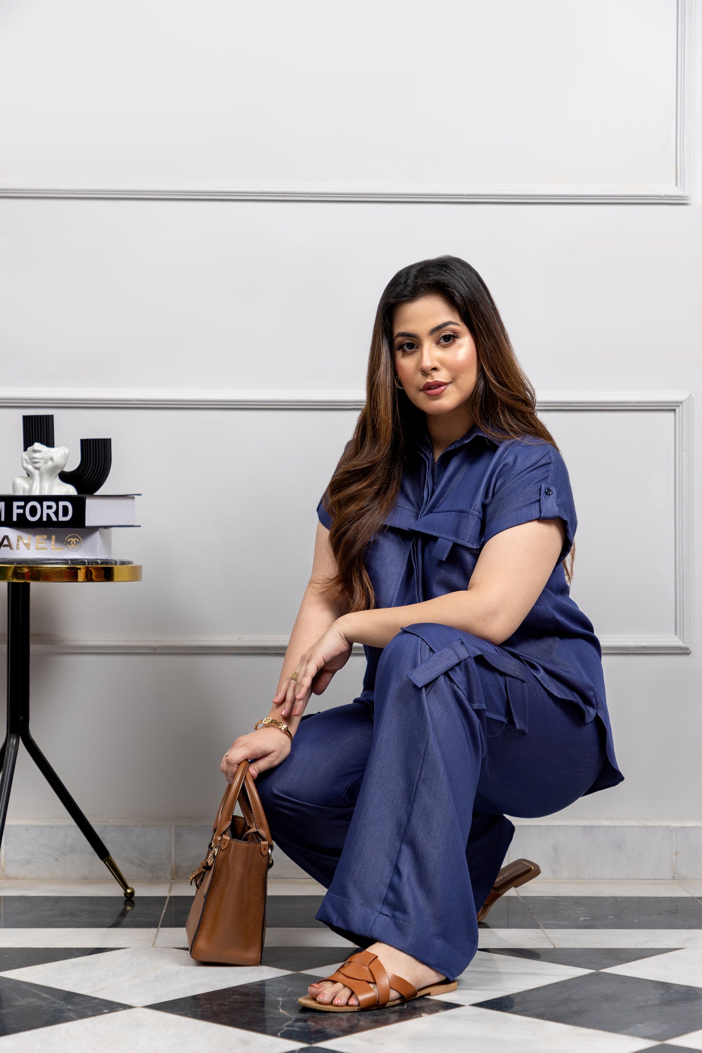 Introducing the Denim Duo, your go-to matching separate designed to elevate your everyday style with effortless sophistication. Crafted from high-quality, breathable denim fabric, this stunning ensemble blends comfort with chic, making it the perfect addition to your wardrobe. The Denim Duo features a sleek denim blue shirt and tailored high-rise denim pants, offering a coordinated look that can be styled in multiple ways.