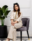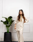 Effortless Elegance: Dune Drift Beige Shirt with Olive Accents and Matching Pants