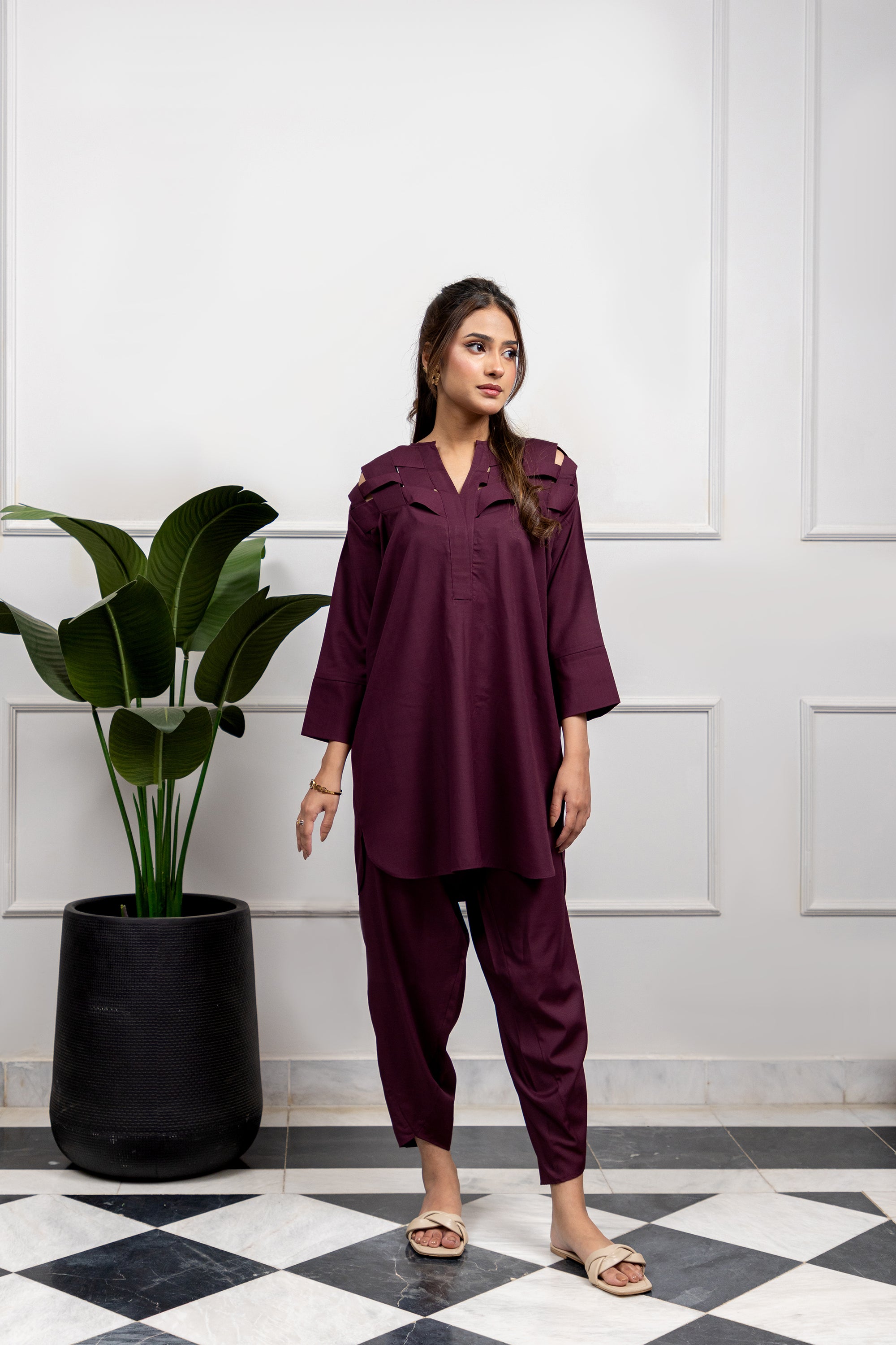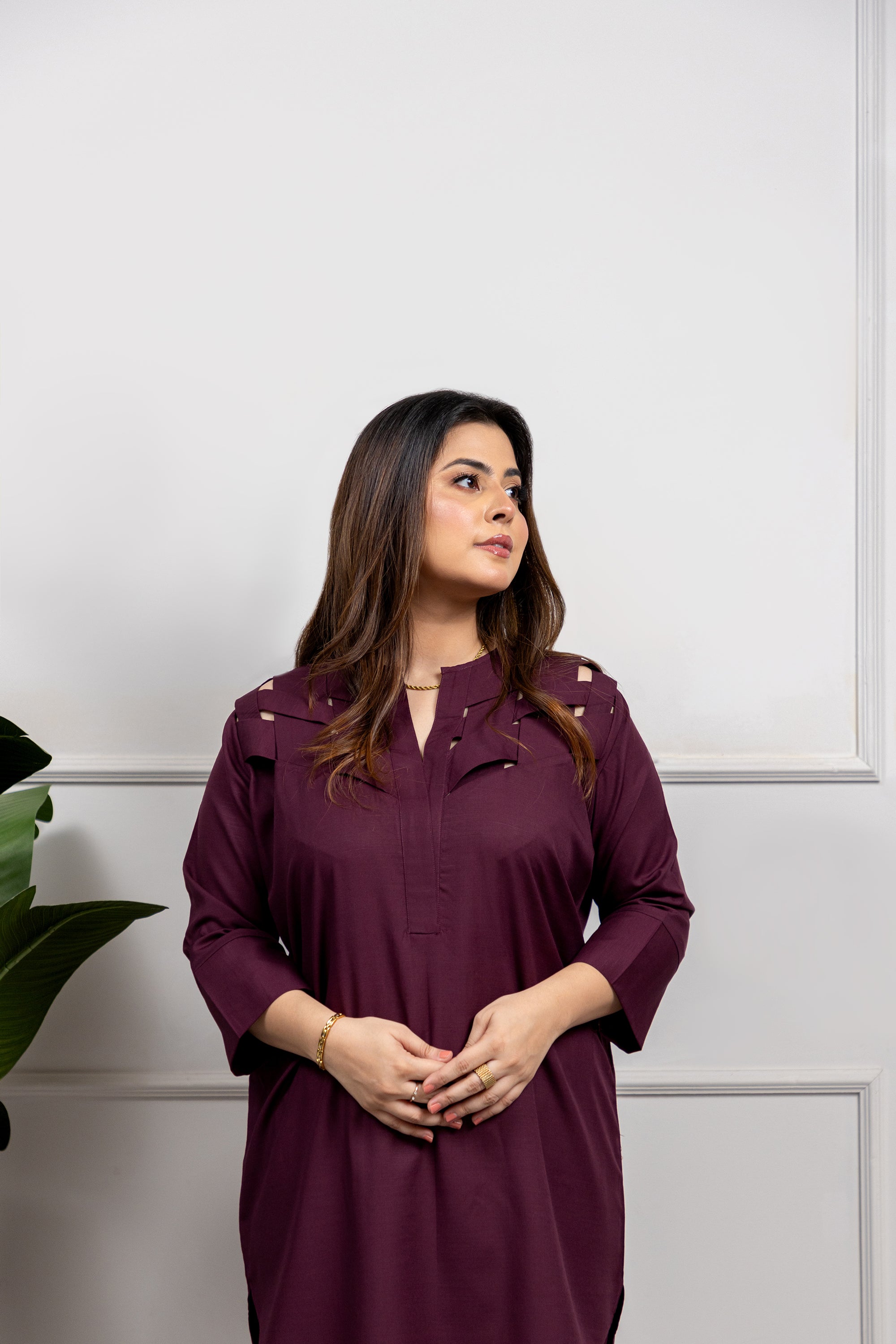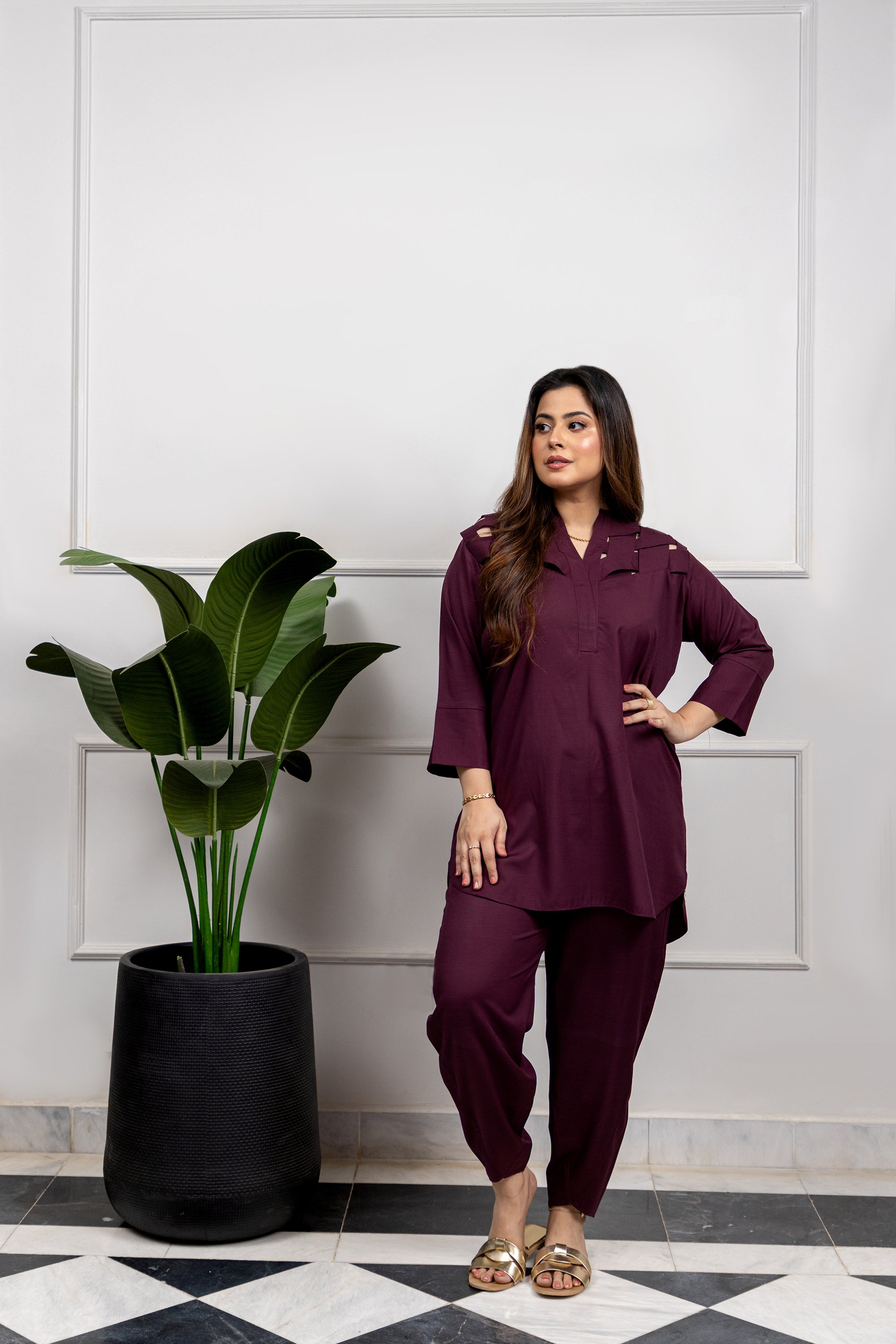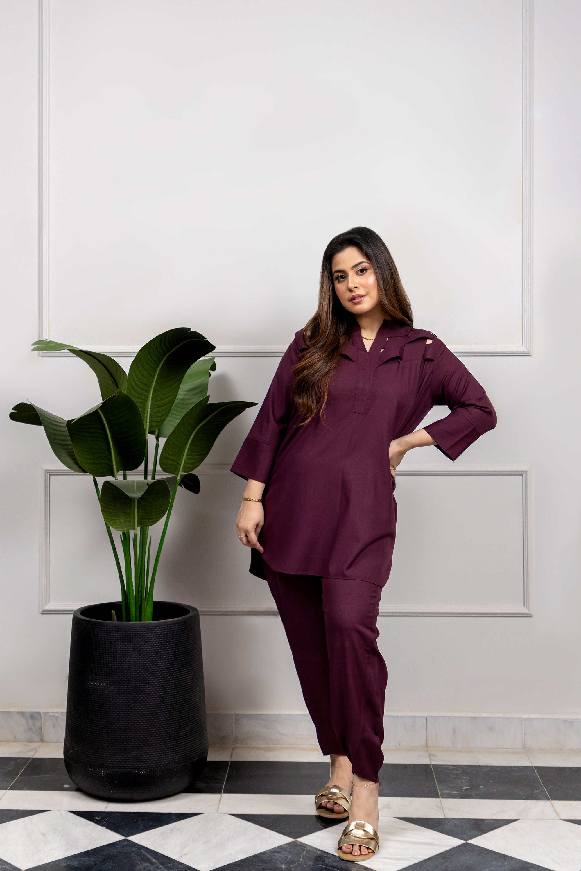 Merlot - Burgundy Basics with Stylish Crossed Neckline Details