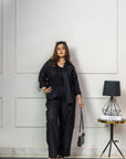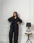 Step into effortless style with our Savannah Set, a stunning ensemble designed to blend comfort with urban flair. Crafted from premium black chord, this set features a versatile cargo pant paired perfectly with a matching top for a coordinated look that transitions seamlessly from day to night.