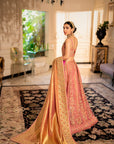 Step into a world of elegance and grace with the Carnation Pink Lehenga Choli, an exquisite ensemble that effortlessly blends traditional artistry with modern glamour. Crafted to perfection, this lehenga choli is the epitome of sophistication, making it the perfect choice for baraat, mehndi, or shalima celebrations.