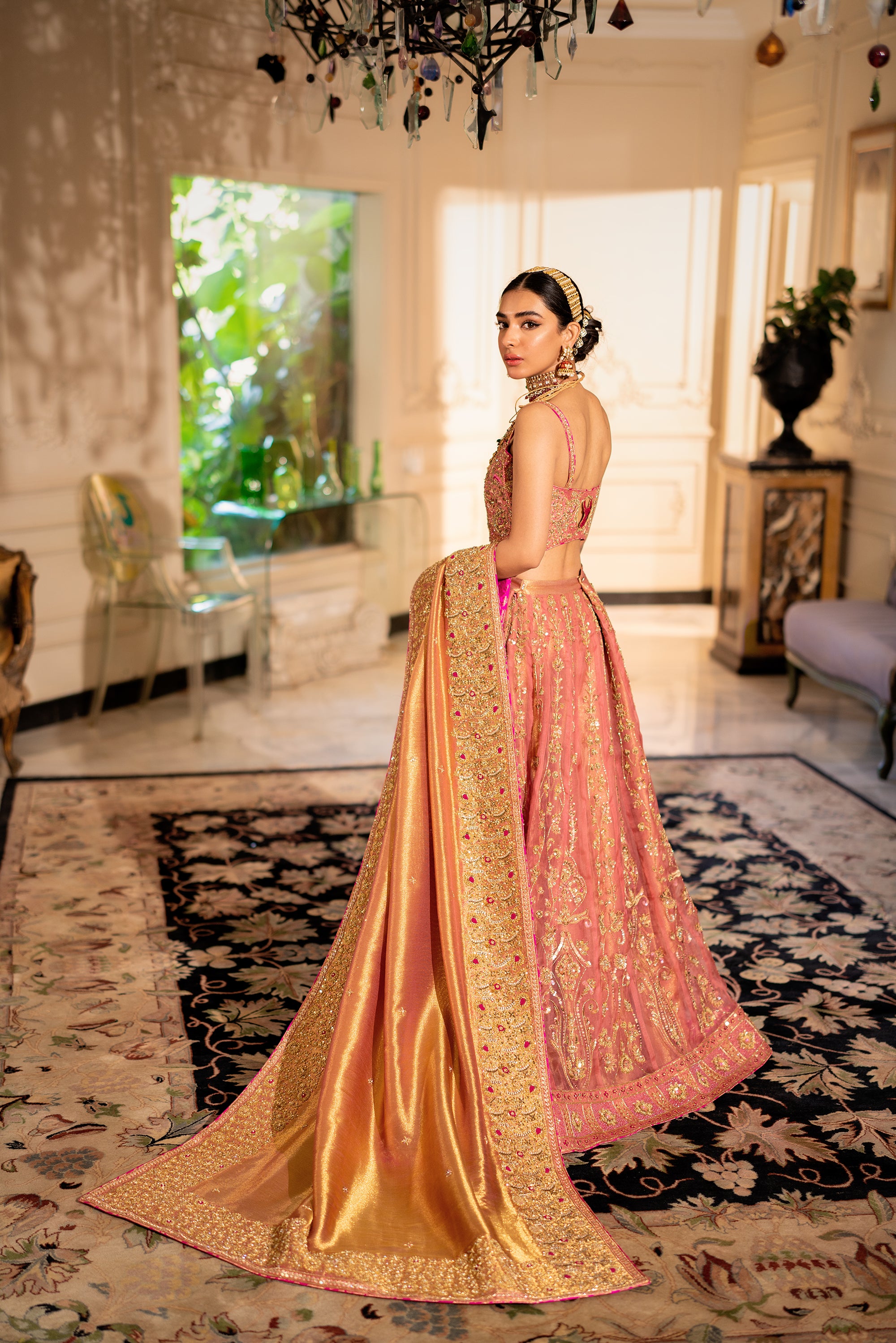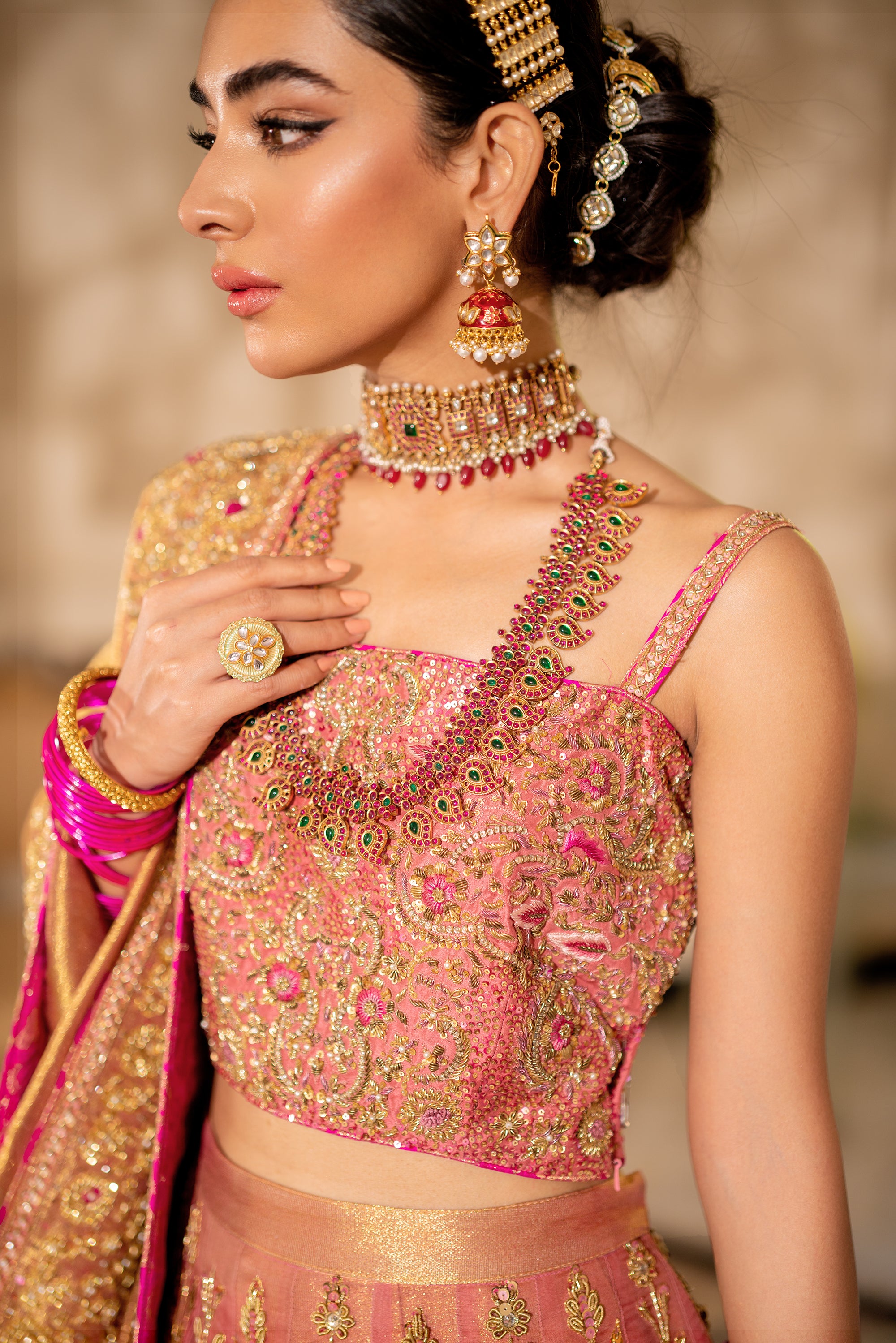 Carnation Pink Lehenga Choli – A Timeless Masterpiece for Baraat, Mehndi, and Shalima