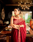 - Rich Maroon Color: The deep maroon hue of this saree exudes sophistication and warmth, making it an ideal choice for festive celebrations, weddings, and elegant evening gatherings.