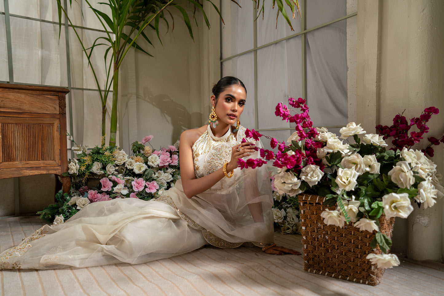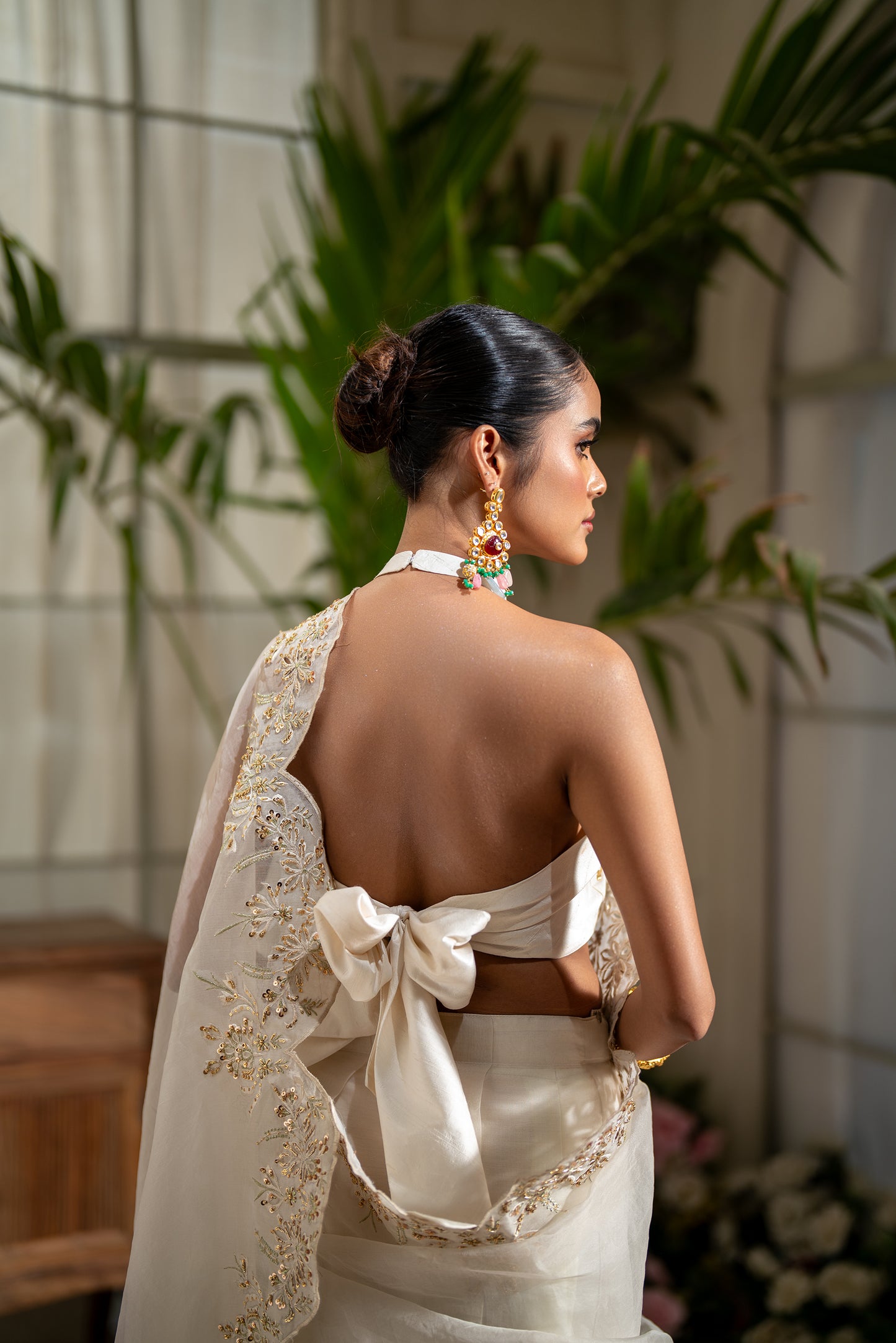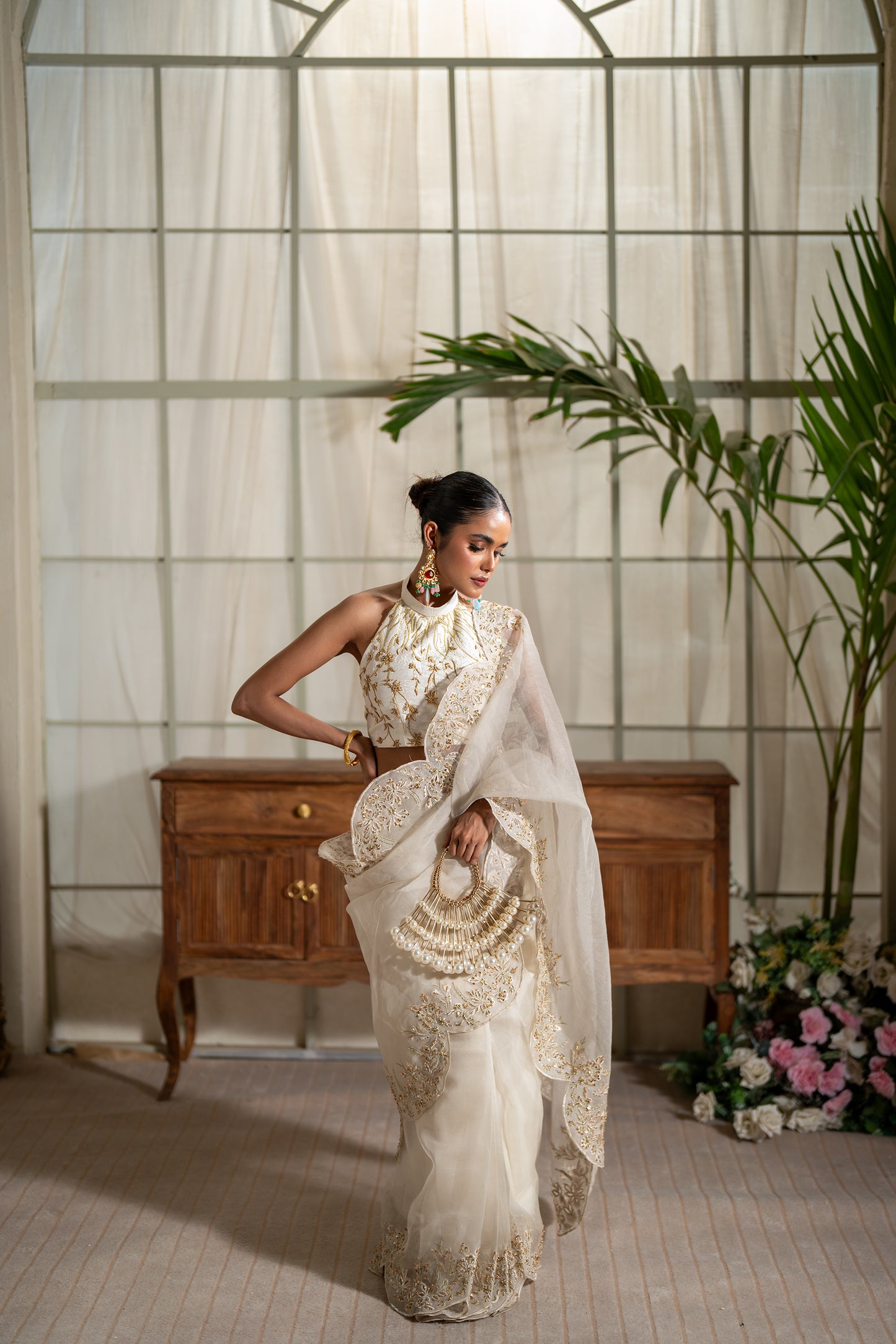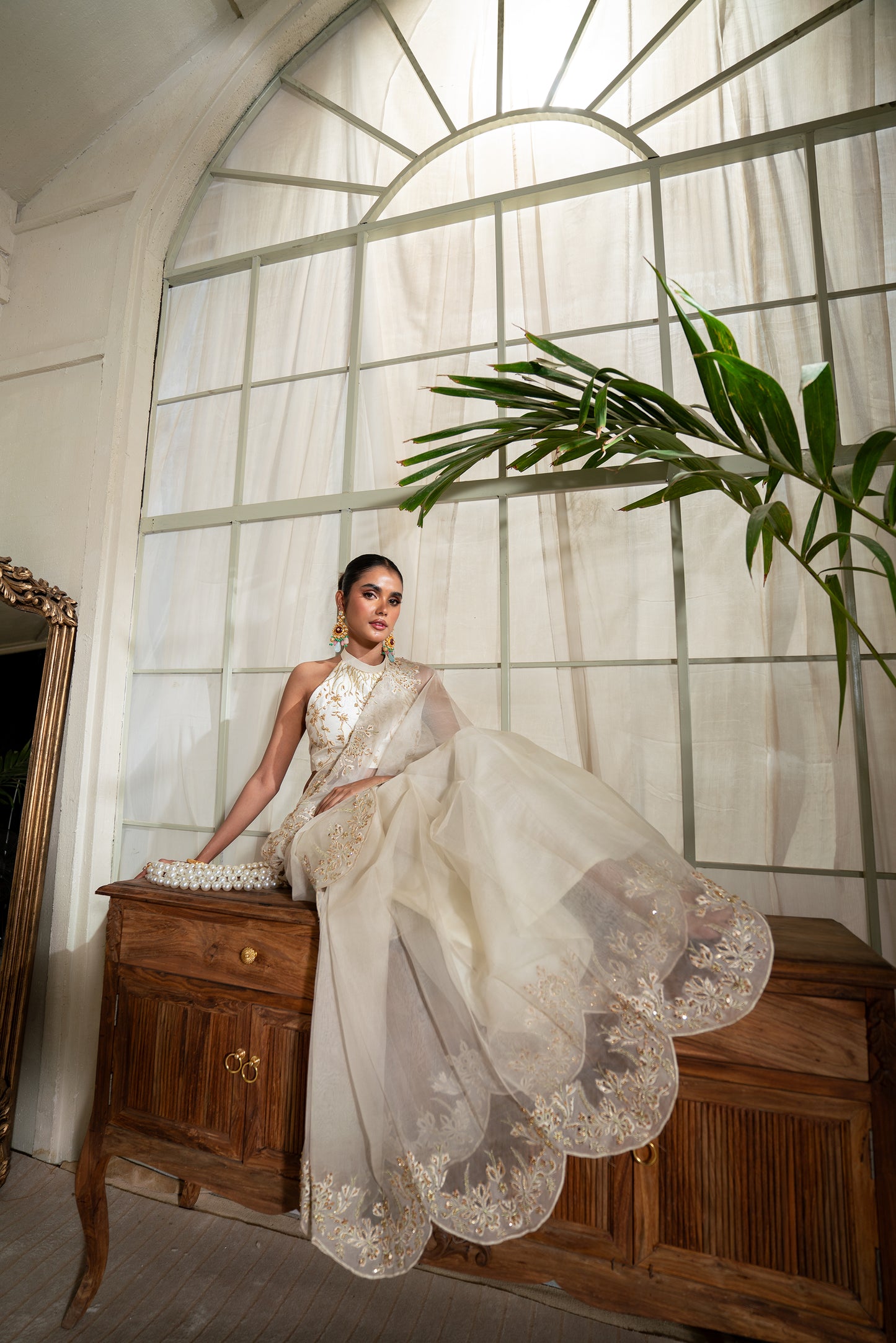 Make a statement with the Noorie - White Organza Saree—a blend of tradition and modernity that promises to make you feel like royalty. Adorn yourself in this enchanting piece and let your style shine through!