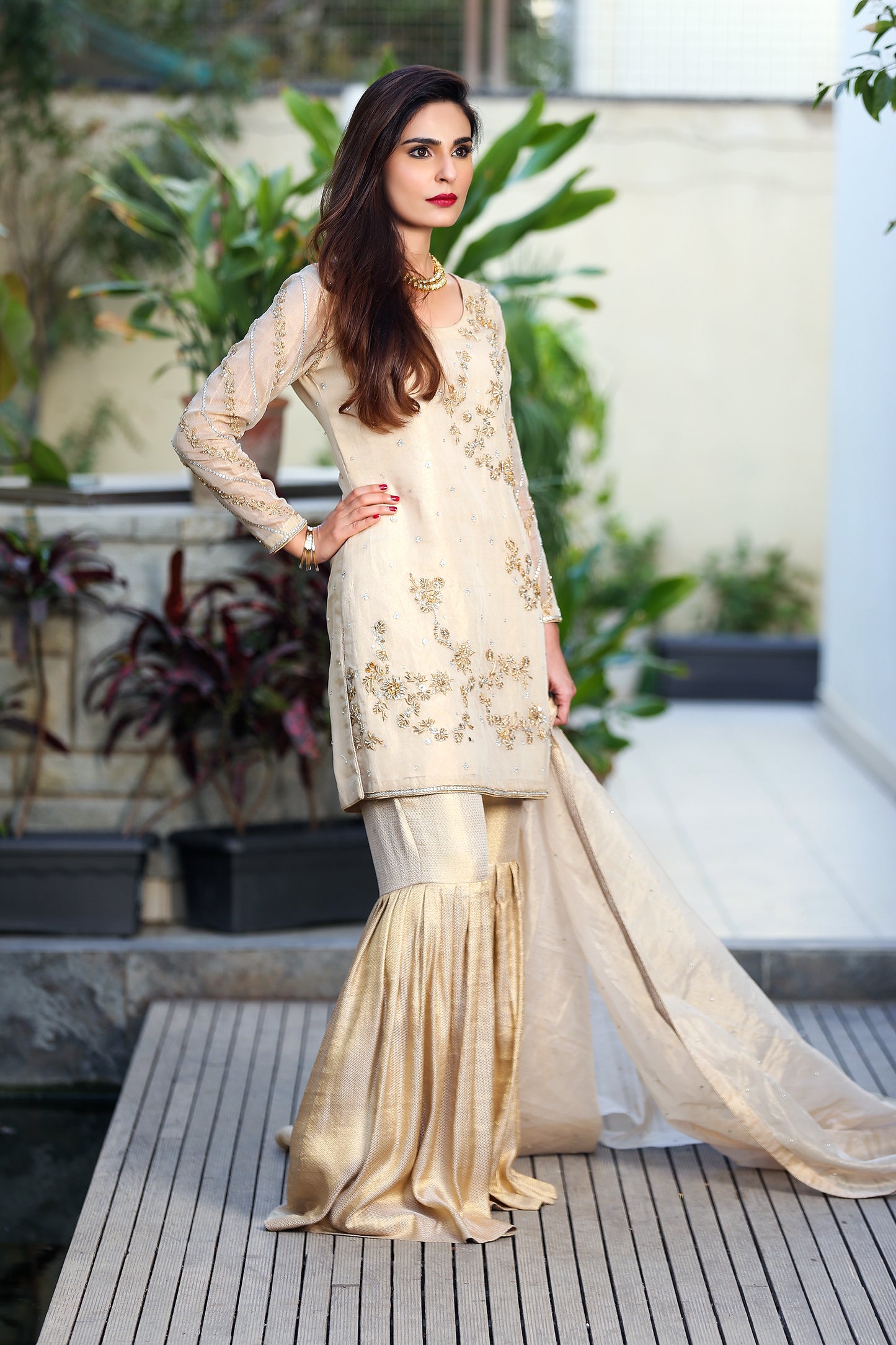 - Intricate dabka handwork on the daaman with chan on the dupatta.