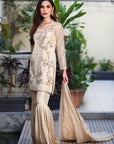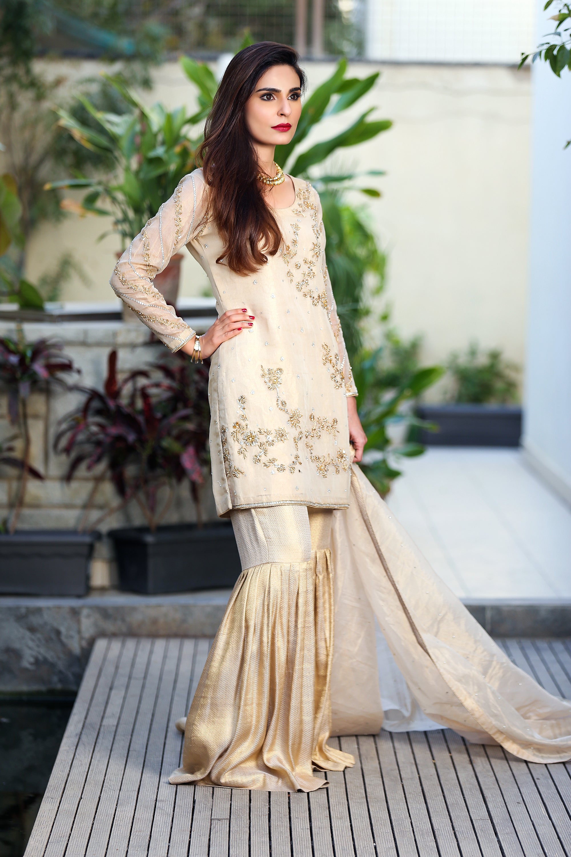- Intricate Dabka Handwork: Adorned with meticulously crafted dabka handwork on the daaman, this outfit showcases the artistry and craftsmanship that goes into every piece. Each detail is a testament to the skill of our artisans, ensuring you stand out in the crowd.