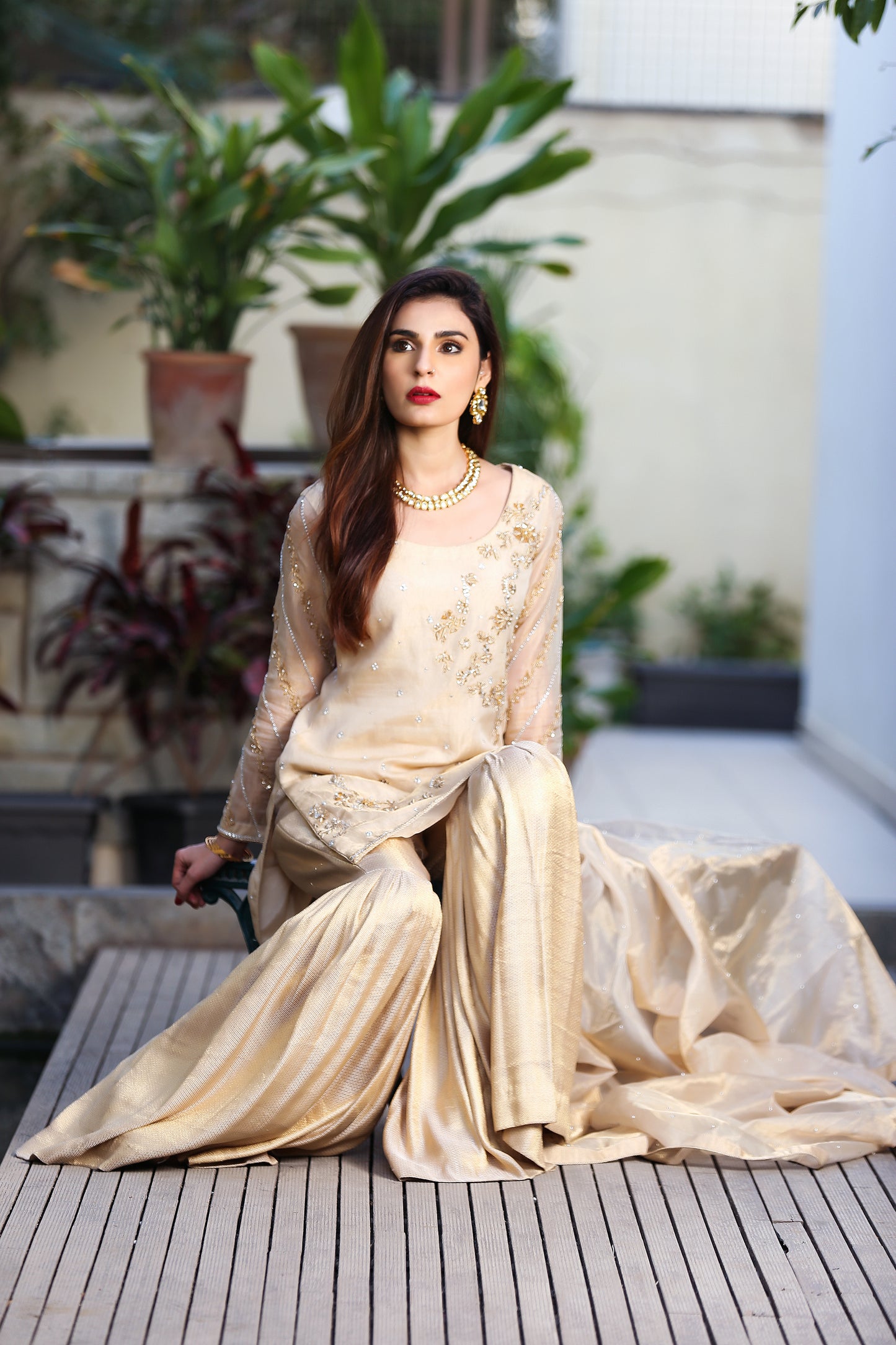 - Atlaas Gharara Pants: Complementing the elegant top are the atlaas gharara pants, designed for both comfort and style. Their flared silhouette adds a touch of modernity while maintaining a traditional essence, making it a versatile choice for various occasions.