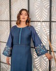 Elevate your wardrobe with this stunning Navy Blue Pret Ensemble, a perfect blend of elegance and modern sophistication. The timeless navy blue hue exudes grace, while the intricate embroidery on the sleeves adds a touch of artistic charm, making this outfit ideal for any occasion.