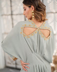 What truly sets this kaftan apart is its cutout back design, offering a modern twist to the classic silhouette. The chic back cutout brings a hint of allure, making it a perfect choice for those who want to add a subtle edge to their elegance. Whether you're at a formal event, a casual gathering, or a special occasion, this kaftan is designed to flow beautifully, draping around your figure in a flattering way.