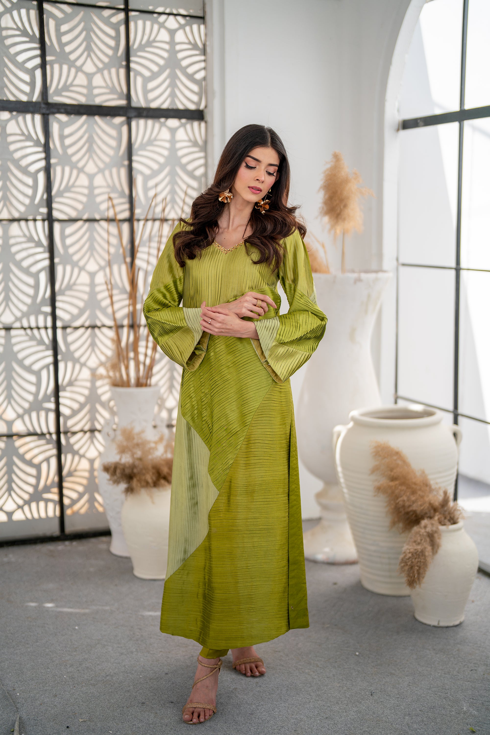 Add the Lime Pleated Shirt to your collection today and experience the perfect blend of elegance, comfort, and modern sophistication!