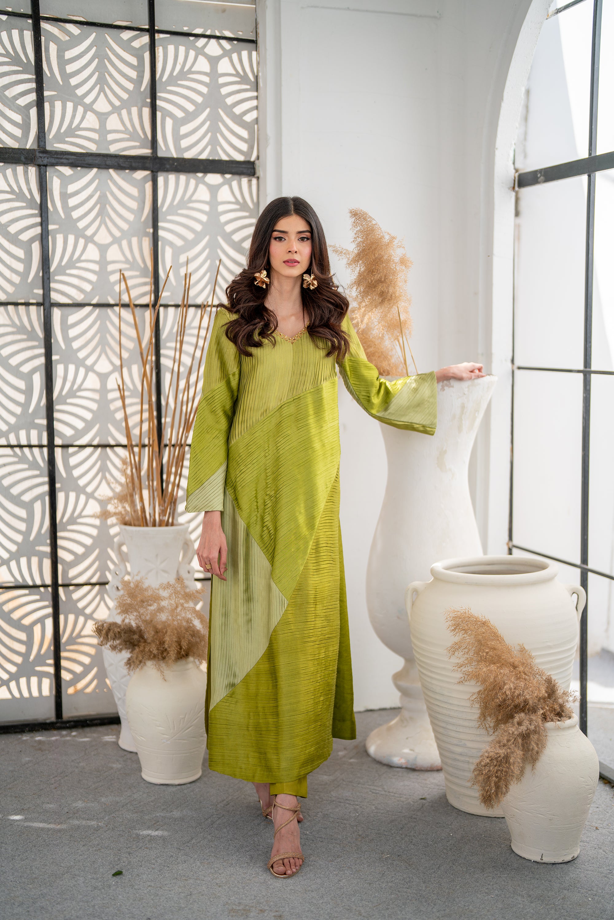 Whether you're heading to a brunch with friends, an outdoor wedding, or a day at the office, the Lime Pleated Shirt is your go-to choice for effortless elegance. Dress it up with heels and statement jewelry for a sophisticated look, or keep it casual with flats and minimal accessories.