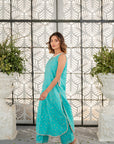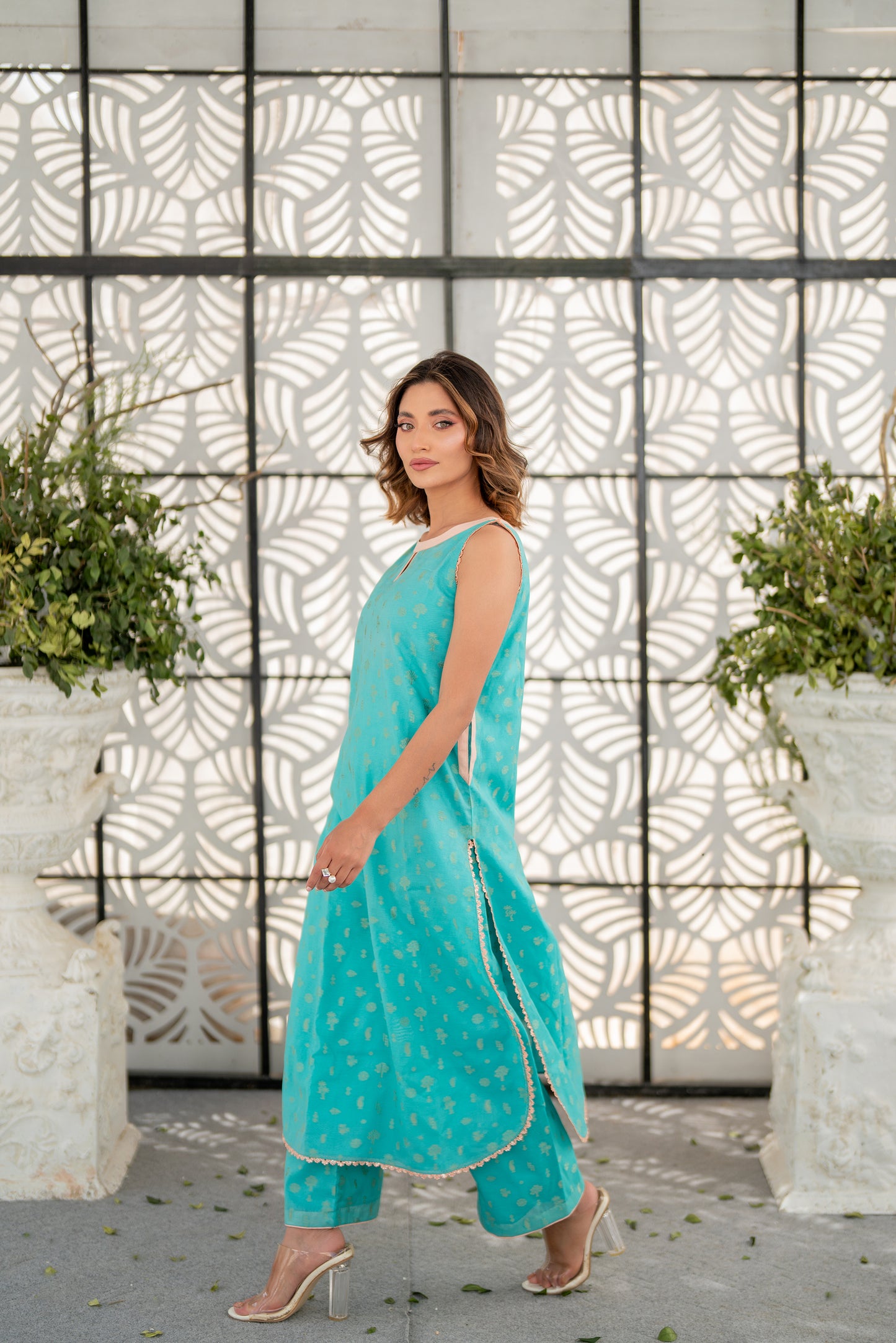 The Aqua Swiss Cotton Matching Separate is more than just an outfit; it’s a statement piece that embodies comfort and elegance. The soft fabric ensures all-day wearability, making it perfect for everything from casual brunches to garden parties or even a stylish day at the office. The breathable nature of Swiss cotton keeps you cool, while the pockets provide the convenience you need without sacrificing style.