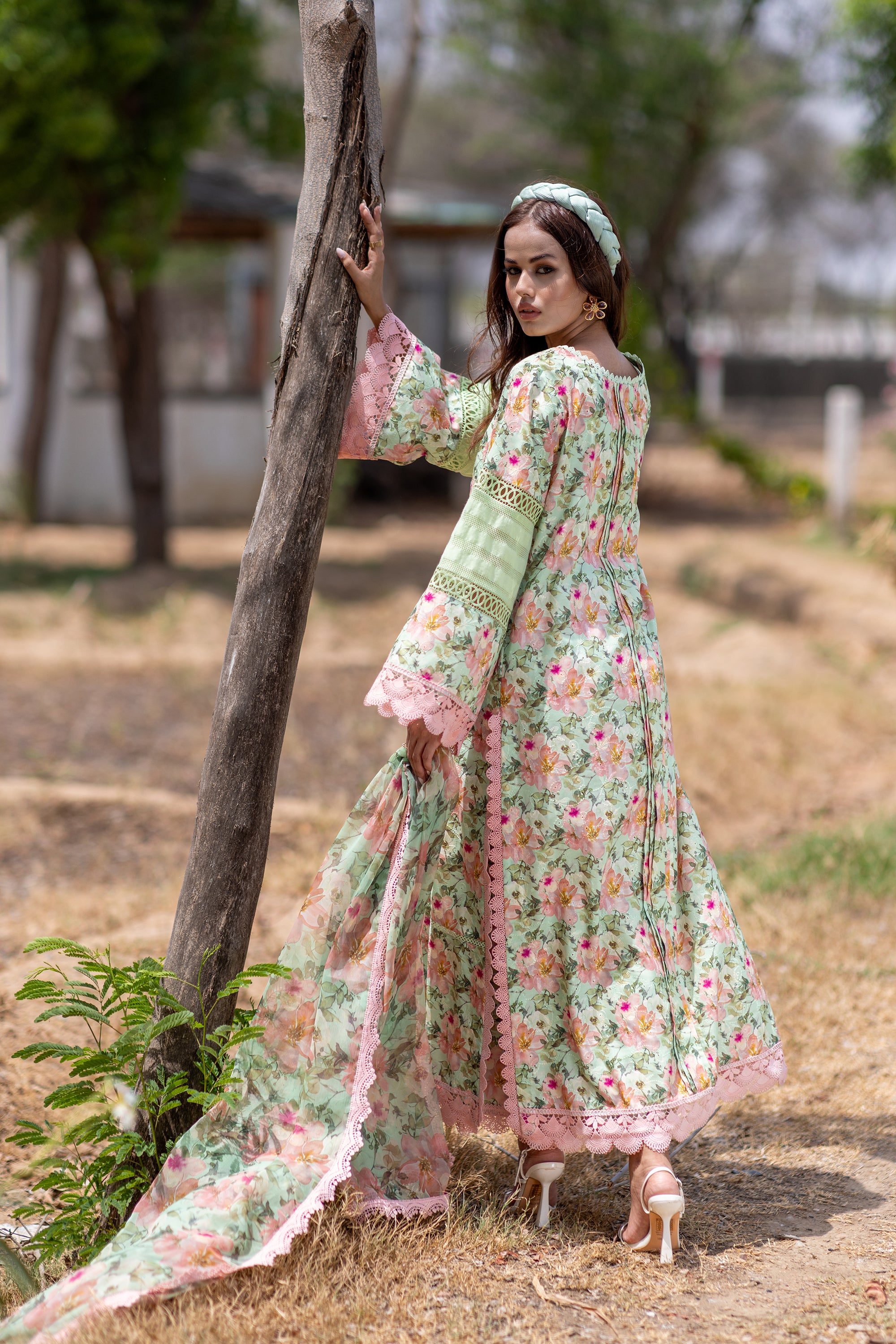 To maintain the beauty of this outfit, we recommend dry cleaning only. Handle with care to preserve the delicate embroidery and prints.