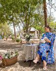 Blue Printed Floral Silk Outfit