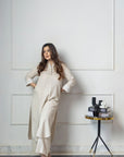 Elevate your wardrobe with the enchanting Sandstone Serenade Set, where elegance meets effortless style. This stunning beige long shirt is designed to be the perfect canvas for your unique personality, offering a versatile piece that seamlessly transitions from casual outings to more formal gatherings.